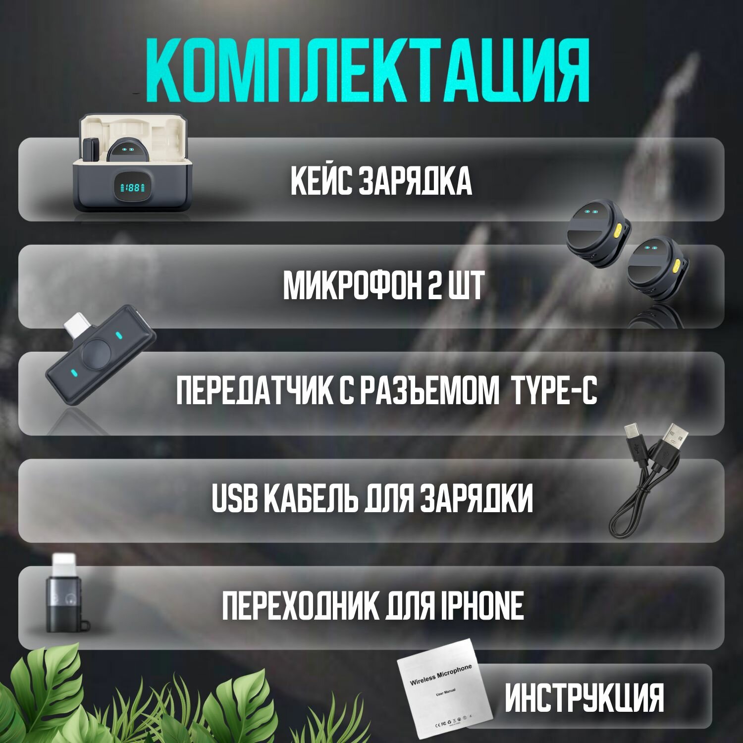 Микрофон петличный, беспроводной, с шумоподавлением, для мобильного телефона Android и iPhone с разъемами Type-C или Lightning. Микрофон петличка. интересное: