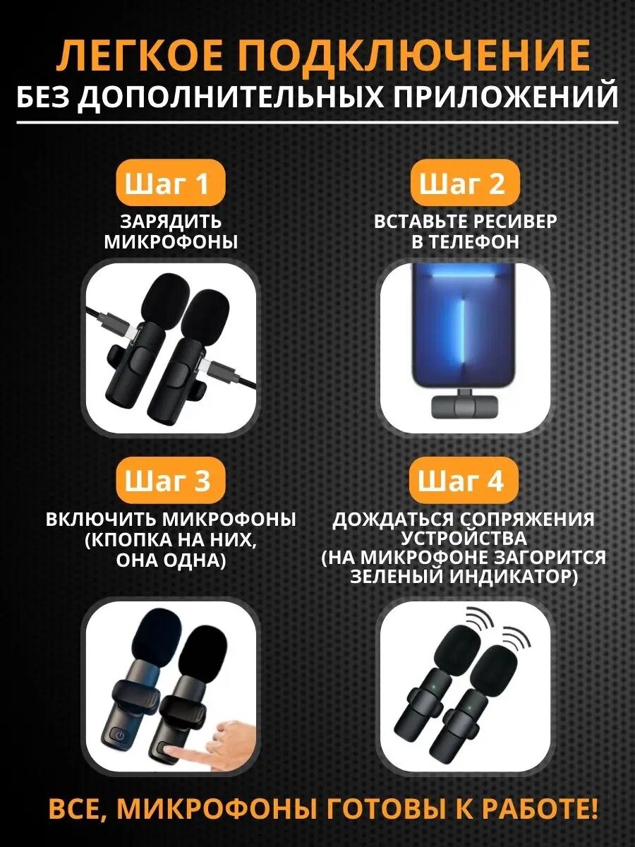 СохранитьМикрофон петличный беспроводной lightning для телефона iphone, 2 петлички на одежду для записи звука, стрима блогеров,с ветрозащитой,портативный интересное: