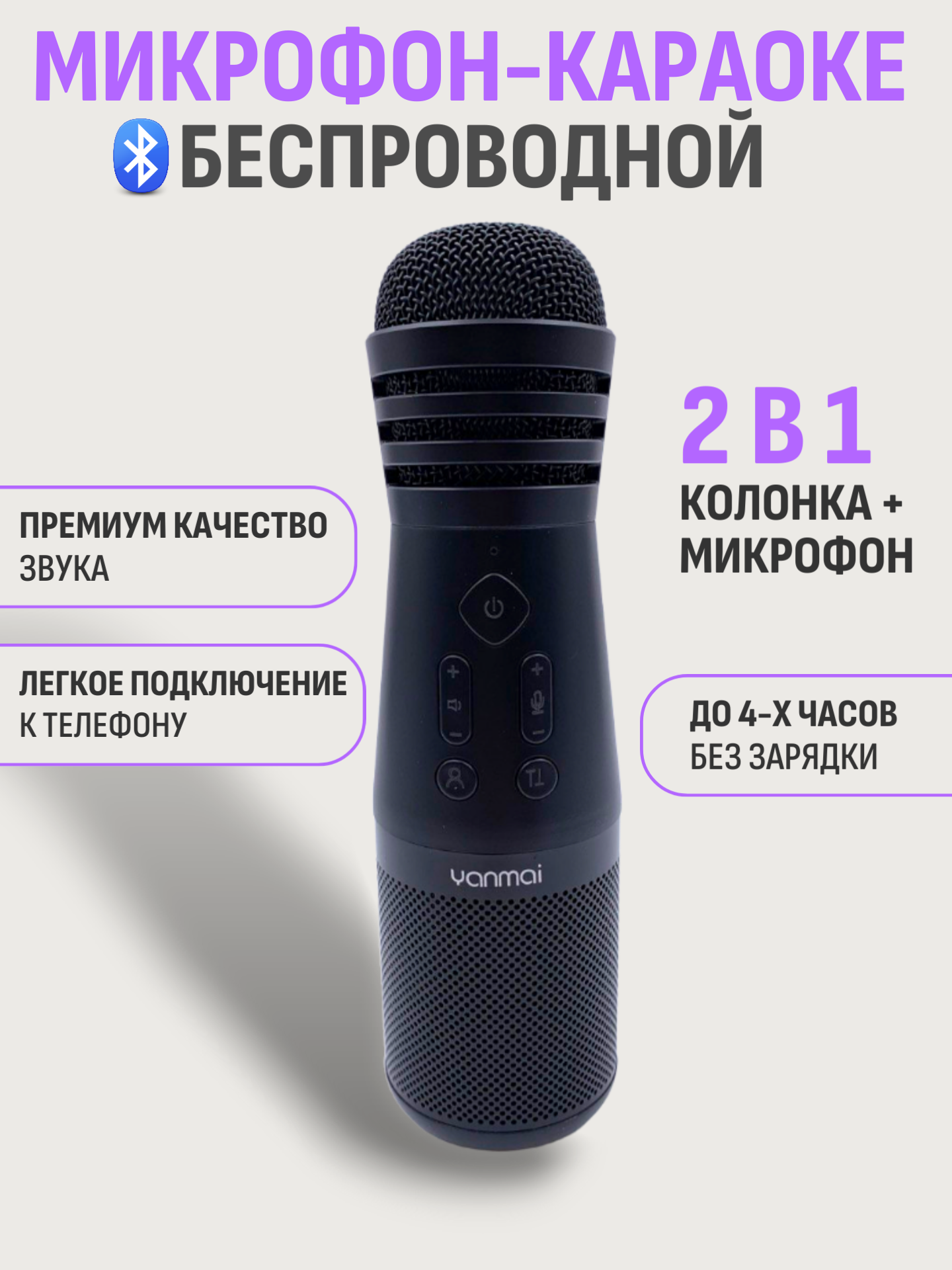 Купить Микрофон караоке беспроводной студийный с колонкой Bluetooth, SerenityVision