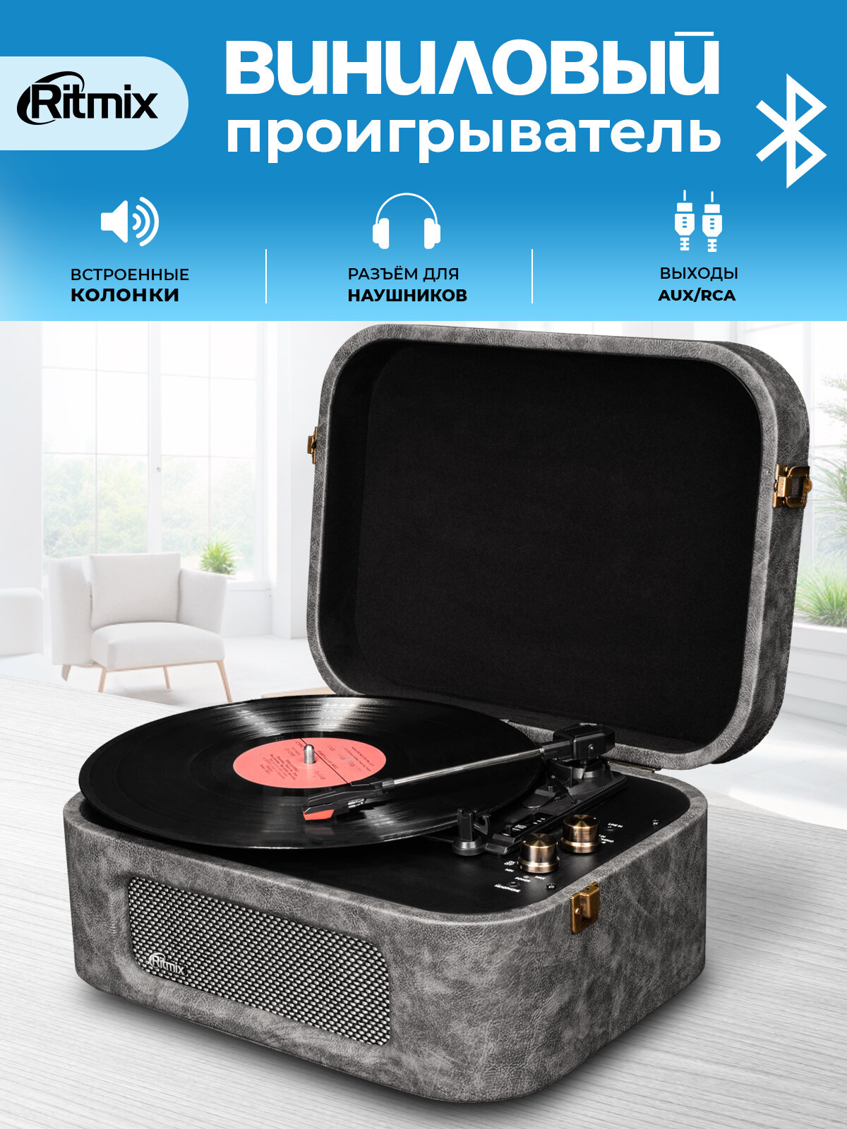 Виниловый проигрыватель Ritmix LP-190B (серый)