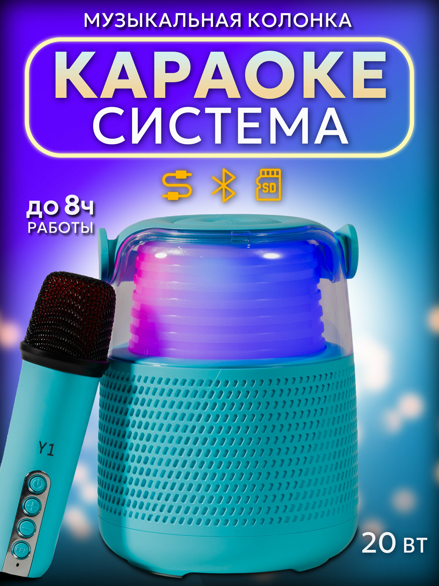 Купить Портативная колонка Y-1 с беспроводным микрофоном, голубая