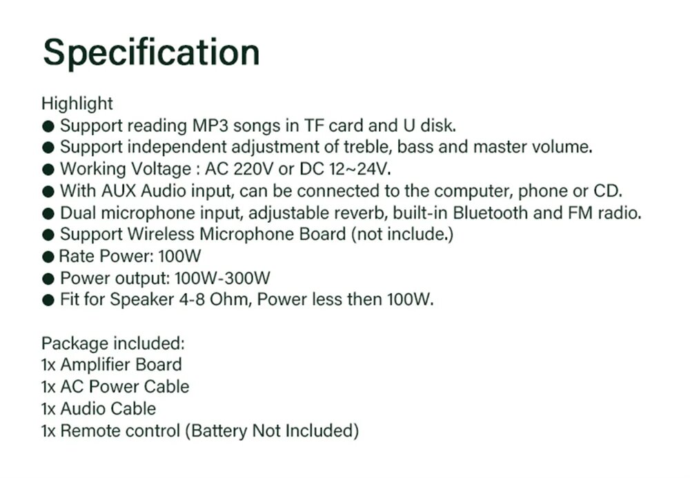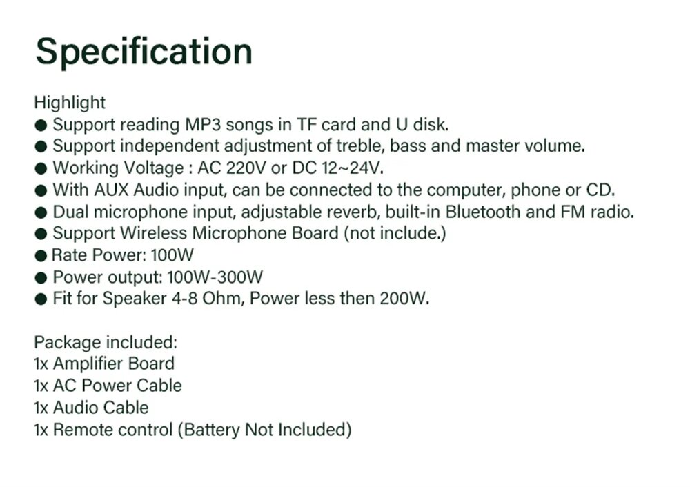Ниже Вы можете прочитать отзывы на Плата усилителя MP3, 600 Вт, Bluetooth 5,0, 12 В, 24 В, D100 200W Amplifier, EU Plug, ознакомится с подробными характеристиками, посмотреть интересные обзоры и фотографии на Плата усилителя MP3, 600 Вт, Bluetooth 5,0, 12 В, 24 В, D100 200W Amplifier, EU Plug.