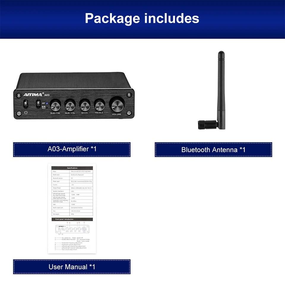 Купить AIYIMA аудио A03 TPA3116 Bluetooth усилитель Hifi стерео 2,1 каналов 100 Вт + 50 Вт x2 бас с высоким контролем сабвуфер усилитель, Black EU plug