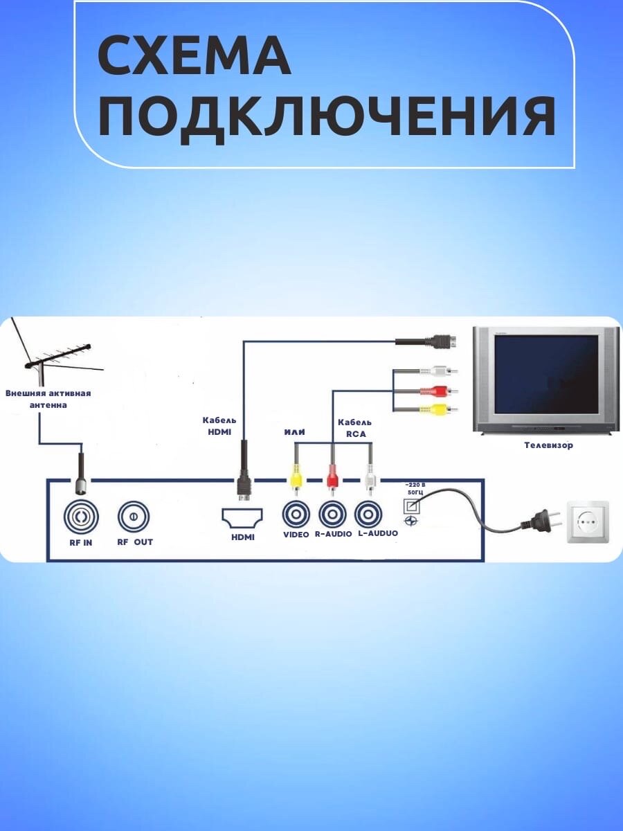 | Комплектация | Антенна 1шт, тв приставка, пуль ДУ, кабель RCA,кронштейн угловой с метизами 1 комплект, хомут с метизами крепления на мачту 1 комплект, защитный колпачок для усилителя на F коннектор, руководство по эксплуатации 1 экземпляр, F-разъем RG6 2шт,ТВ штекер-F 1шт, кабель 10м |