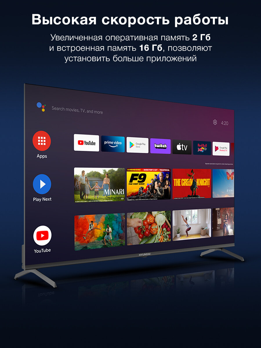 СохранитьТелевизор LED Hyundai Android TV H-LED55BU7009 черный интересное: