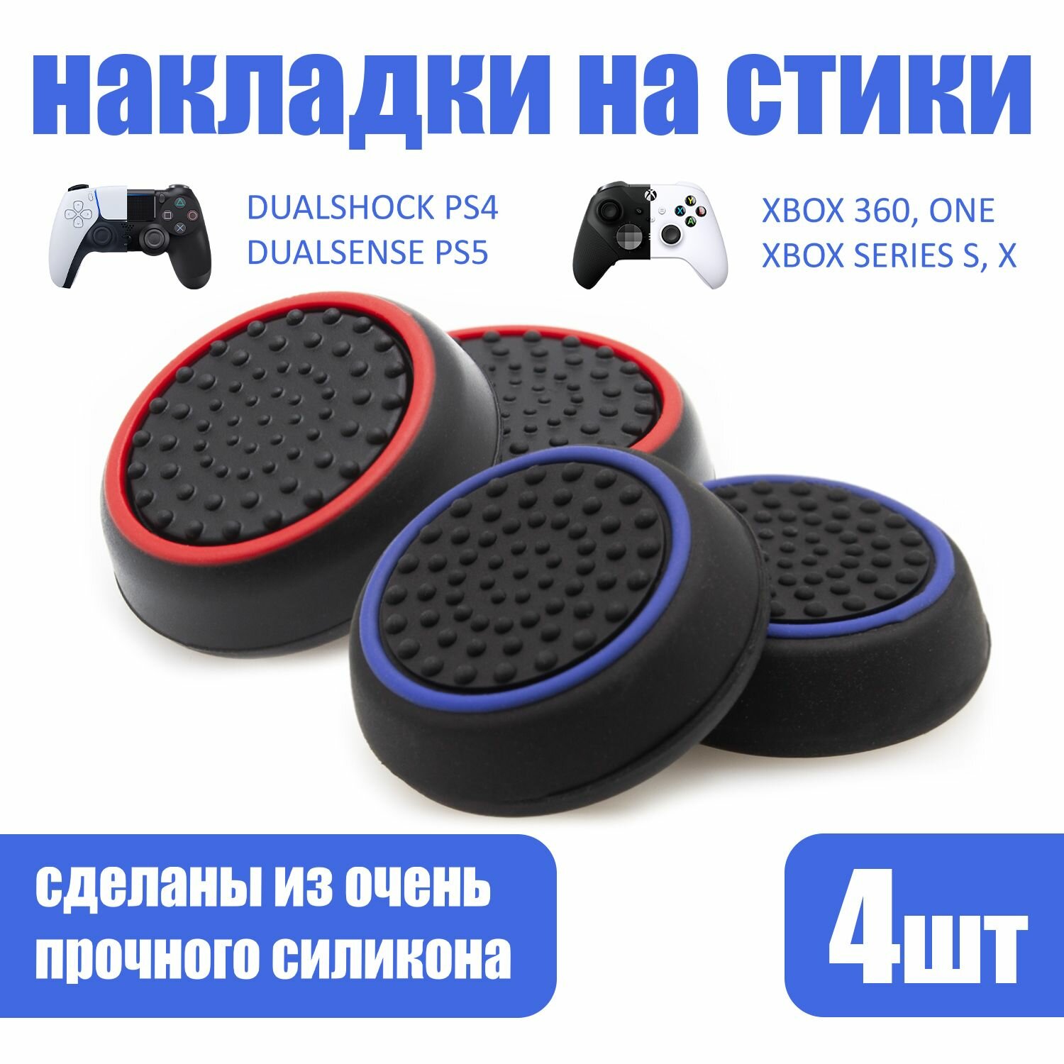 Купить Накладки на стики для геймпада PlayStation, Xbox, PS5/ PS4, Xbox, One, Series X/ S - Красный, Синий 4шт