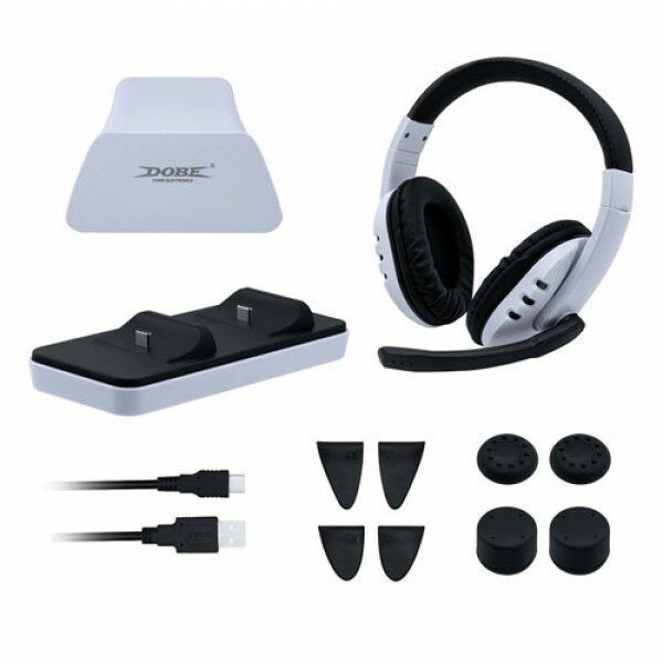 Комплект аксессуаров 12в1 для Sony PS5 накладки, подставка, наушники, кабель DOBE TP5-0578B интересное: