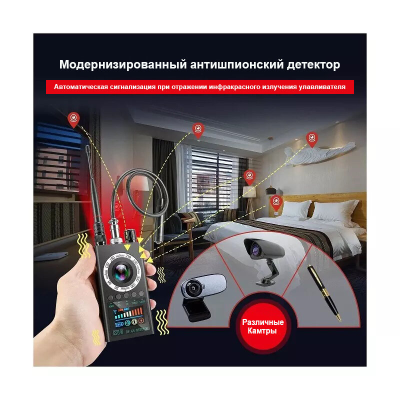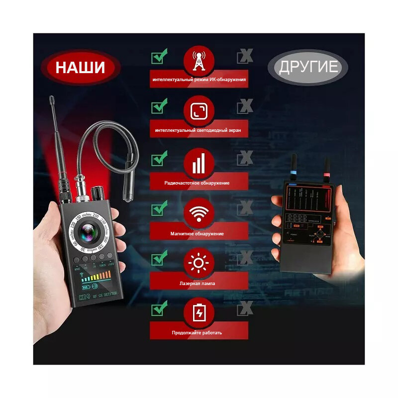 Детектор сигнала K199 Новое интеллектуальное инфракрасное обнаружение прослушивающих устройств арт. K199 интересное: