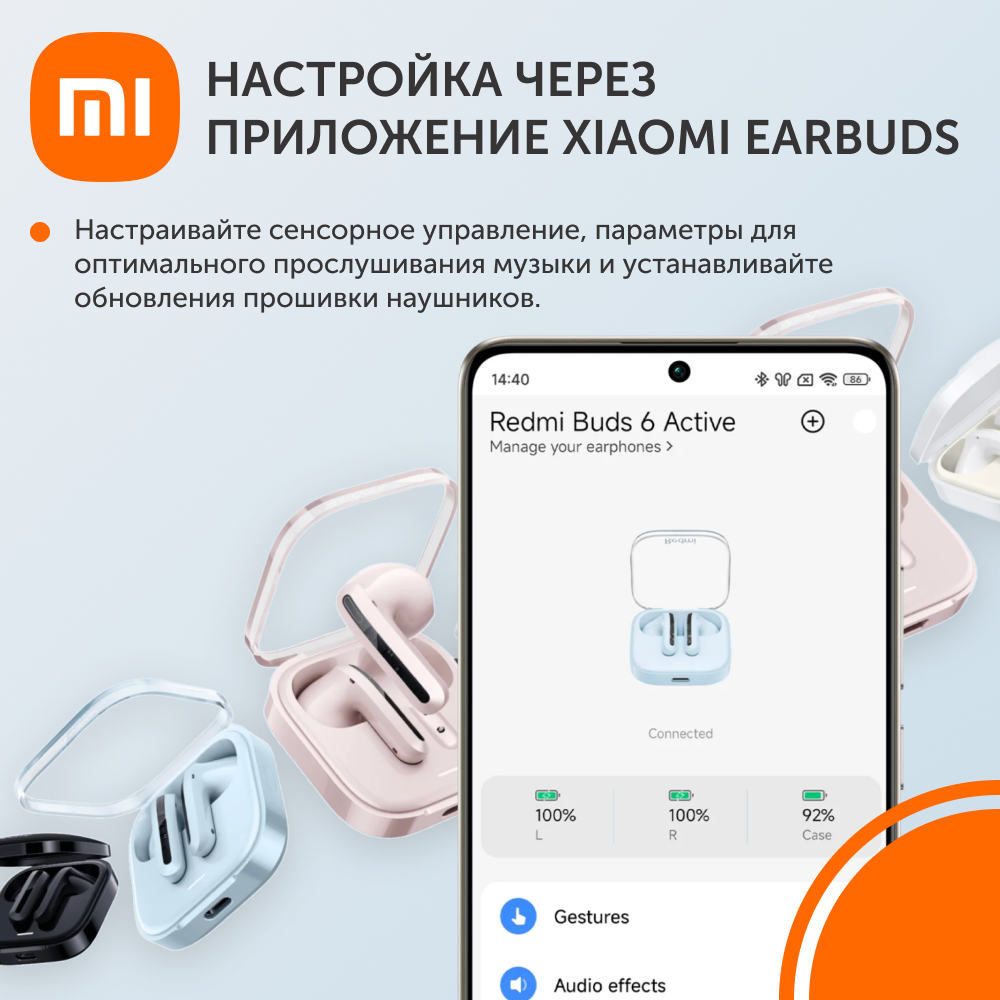 Беспроводные наушники Xiaomi Redmi Buds 6 Active - черные интересное: