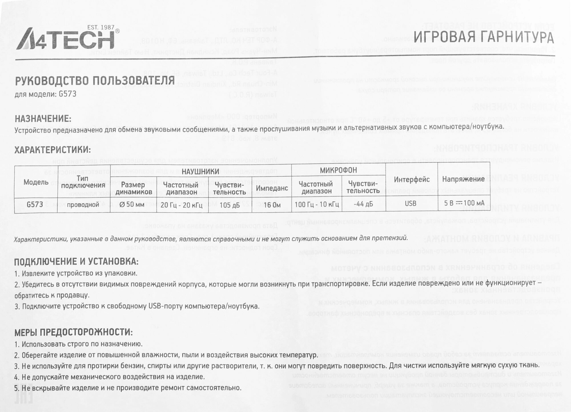 | Особенности | RGB подсветка, отключение микрофона, регулировка громкости, съемный микрофон, шумоподавление |