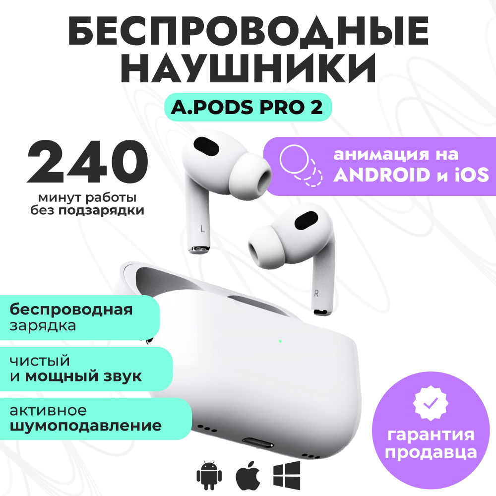 Ниже Вы можете прочитать отзывы на Беспроводные наушники APods Pro 2 c анимацией и шумоподавлением, белые, ознакомится с подробными характеристиками, посмотреть интересные обзоры и фотографии на Беспроводные наушники APods Pro 2 c анимацией и шумоподавлением, белые.