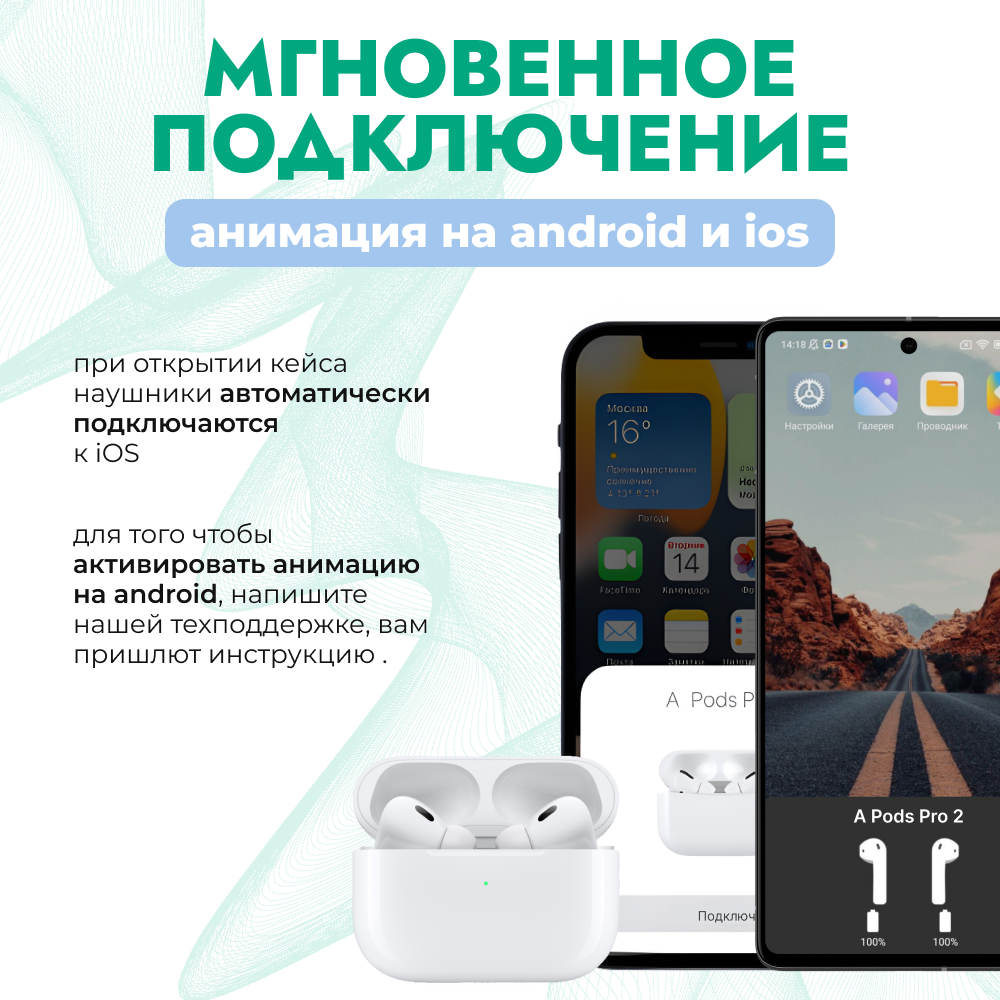 Беспроводные наушники APods Pro 2 c анимацией и шумоподавлением, белые интересное: