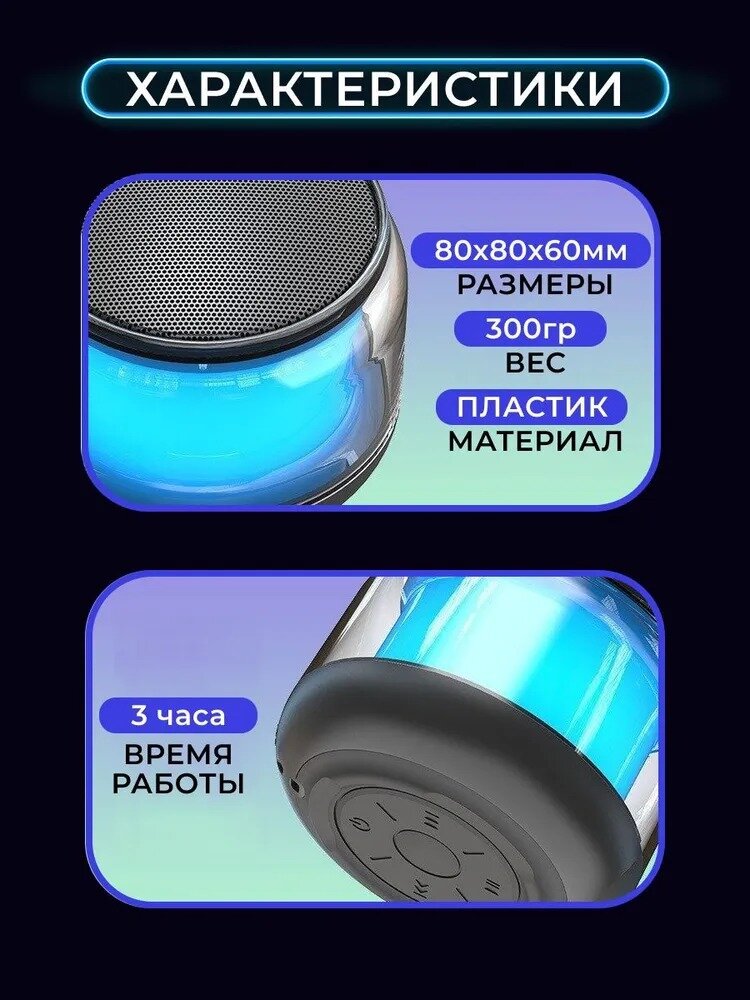 Колонка беспроводная блютуз bluetooth с подсветкой и радио. интересное: