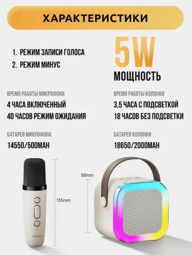 | Дополнительная информация | караоке кологка с двумя микрофонами с функцией минус |