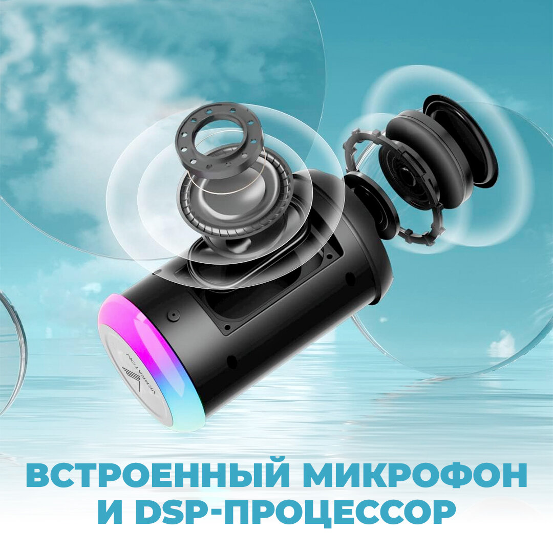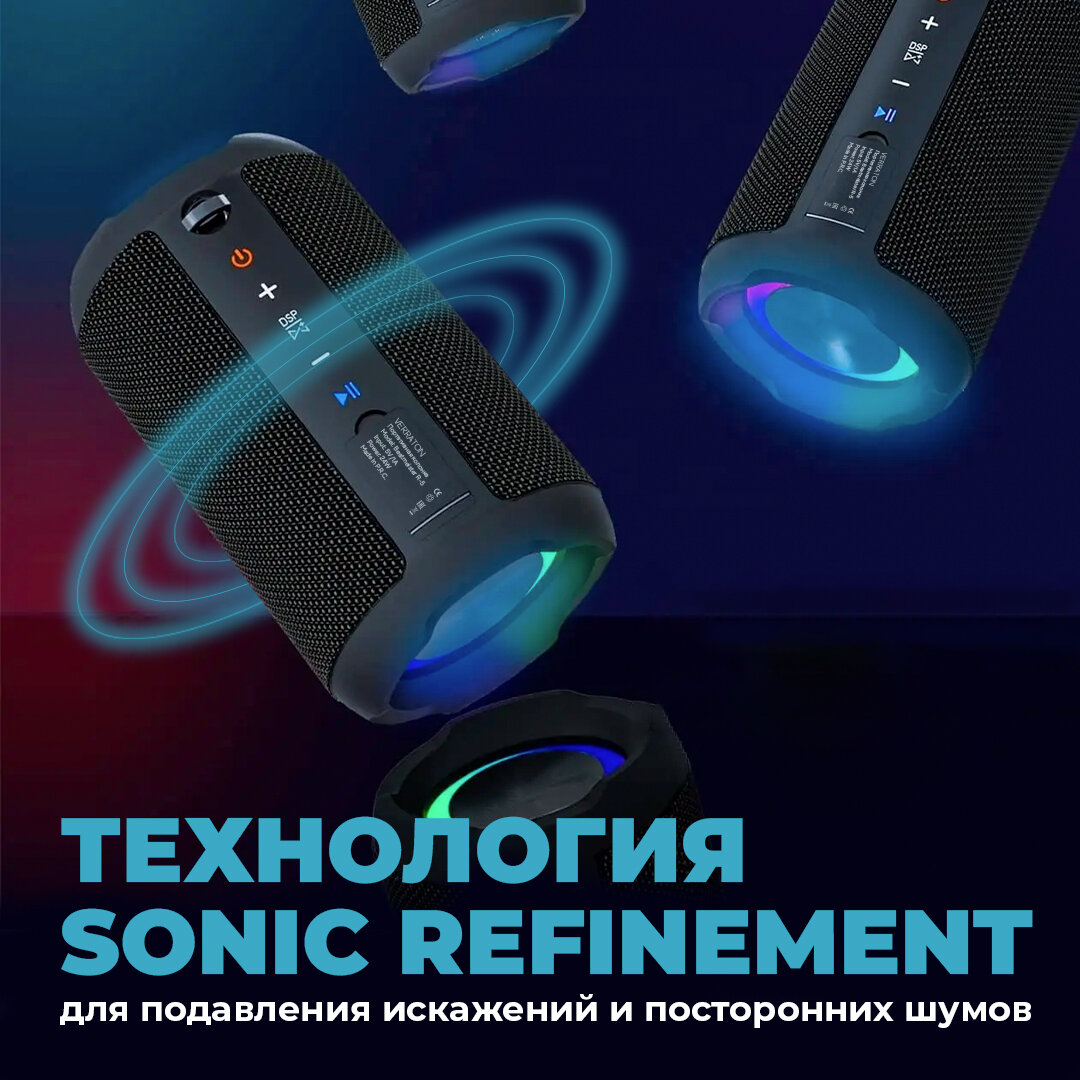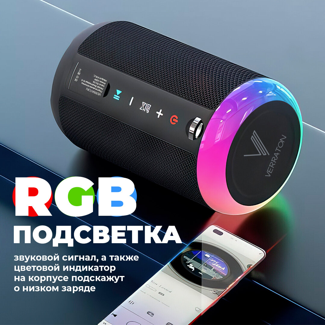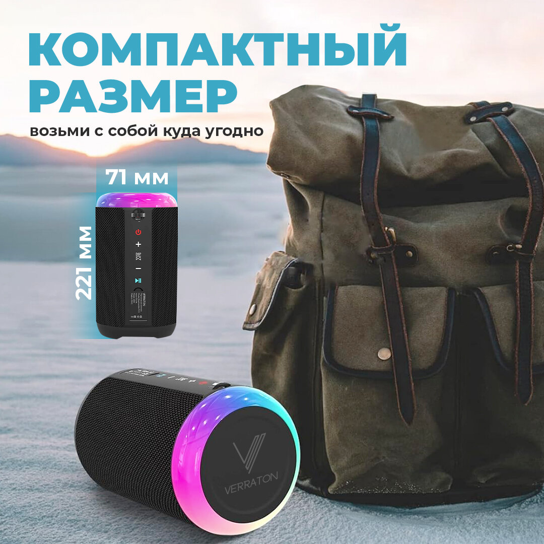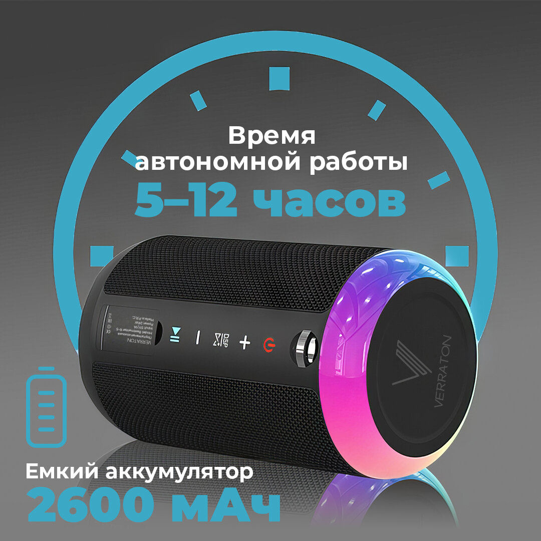 Беспроводная портативная Bluetooth колонка с LED подсветкой. Бумбокс. Акустическая система со стереозвучанием и встроенным микрофоном, microSD, USB, AUX Verraton Beatmeister R-5 интересное: