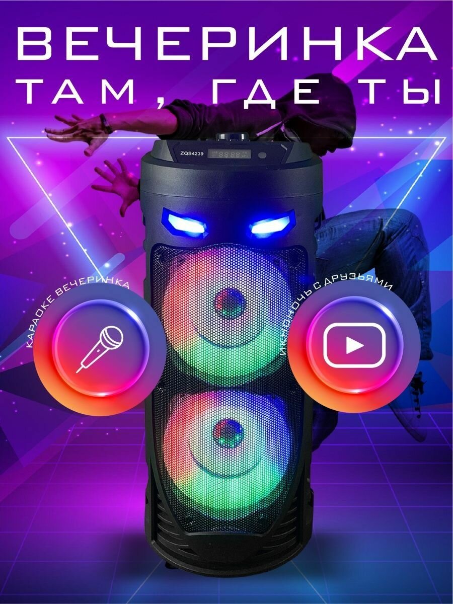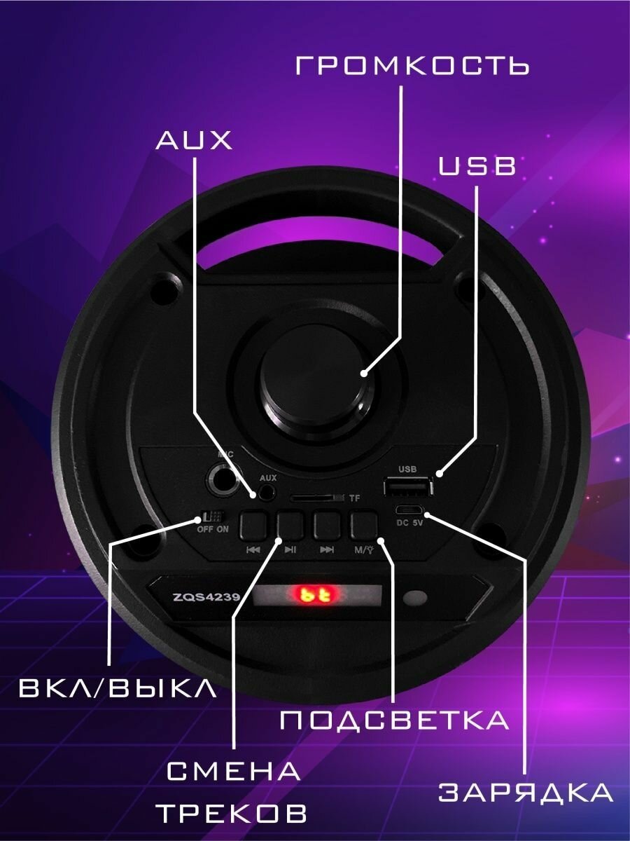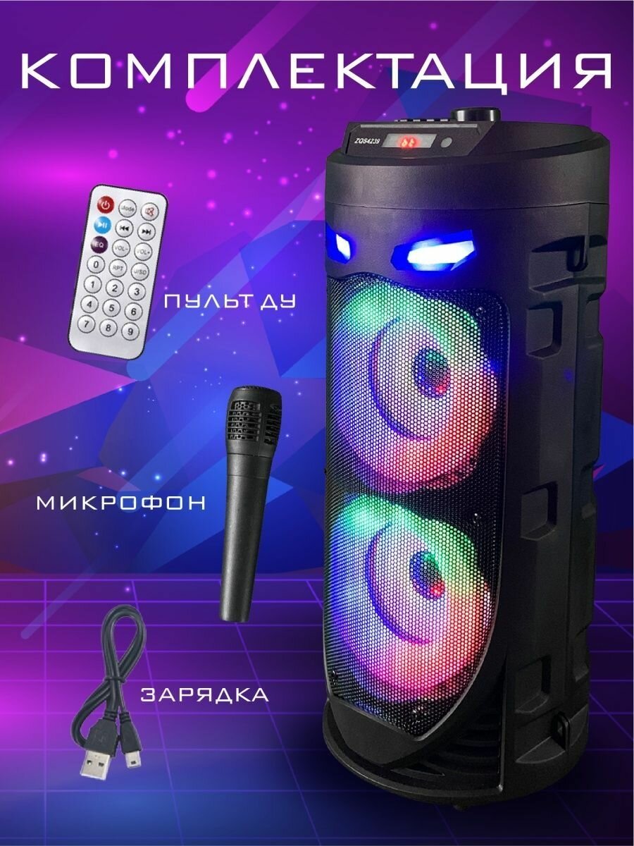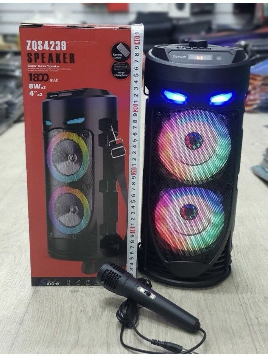 Портативная колонка с Bluetooth ZQS-4239, с пультом ДУ, и микрофоном интересное: