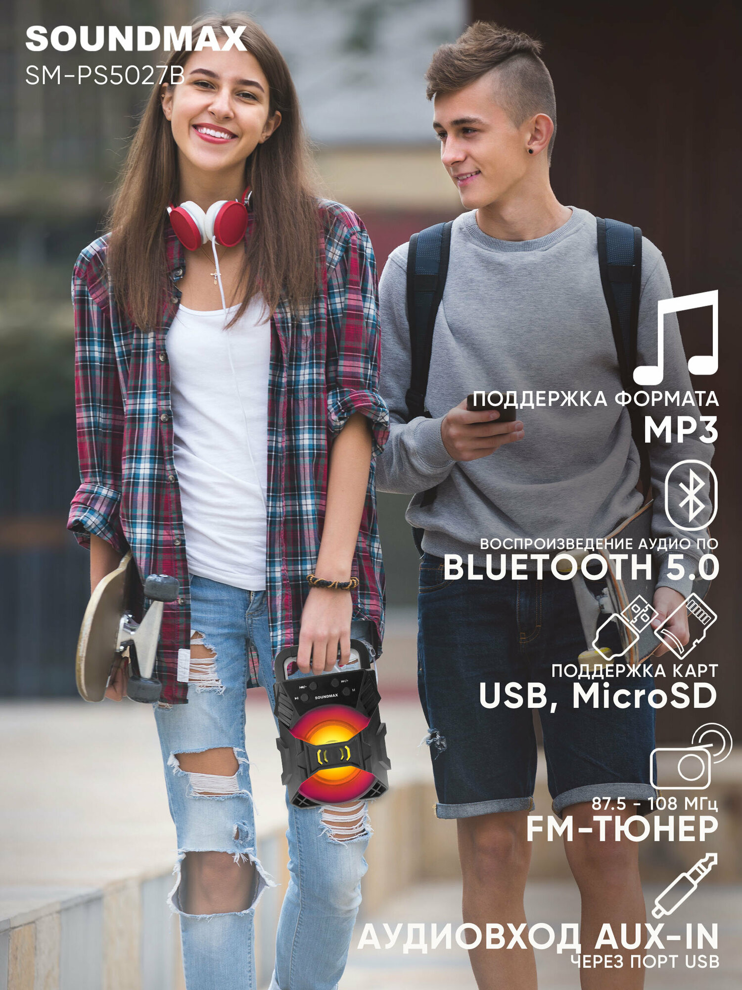 Портативная аудиосистема SOUNDMAX SM-PS5027B черный интересное: