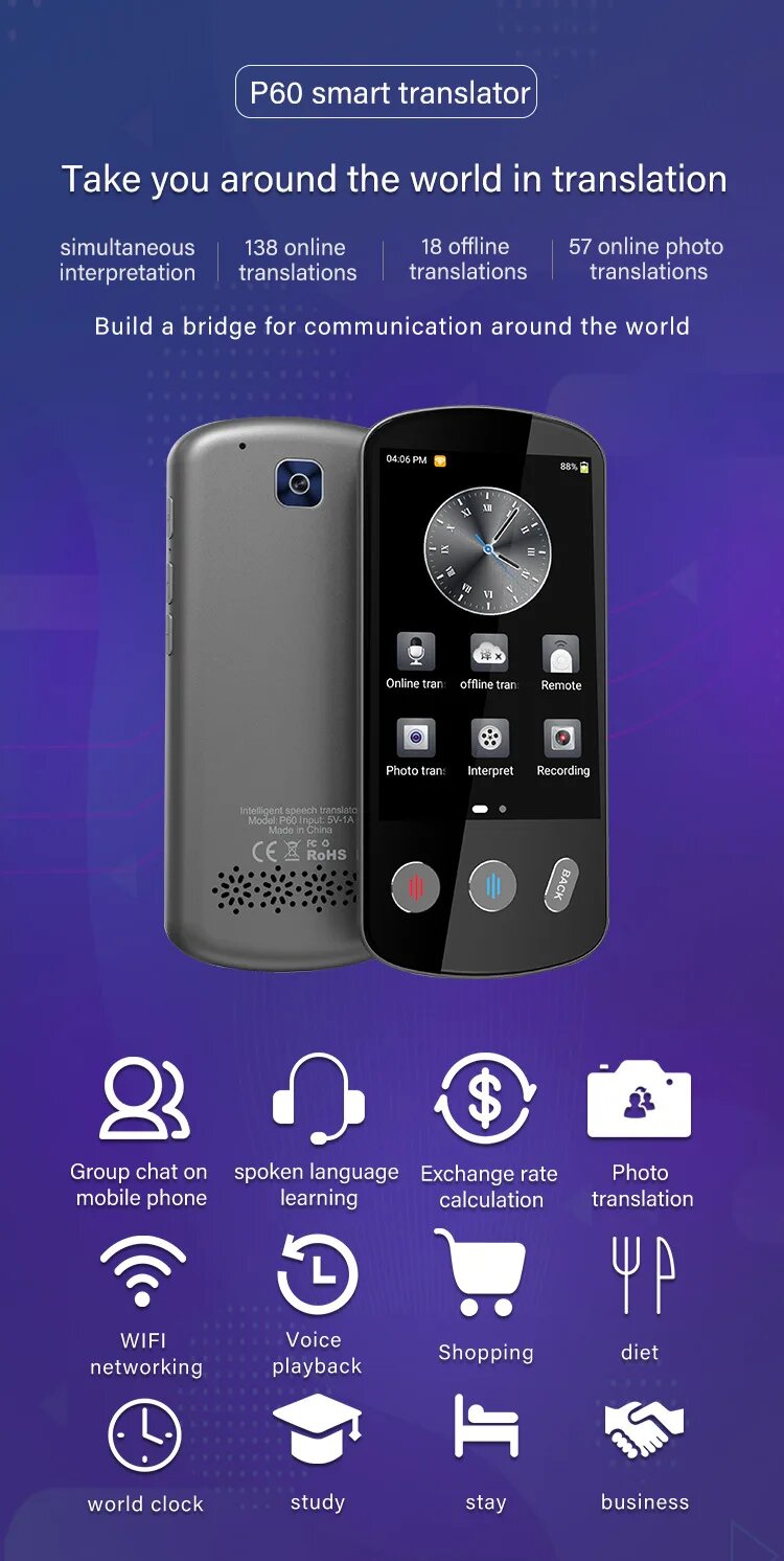 Смарт-переводчик с мгновенным голосовым управлением, Черный интересное: