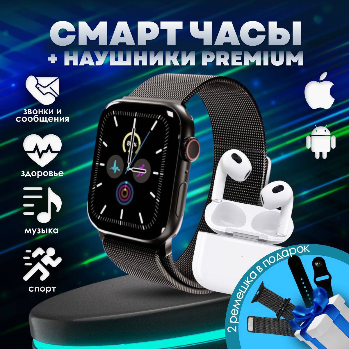 Купить Smart watch black | Умные часы черные + третьи наушники