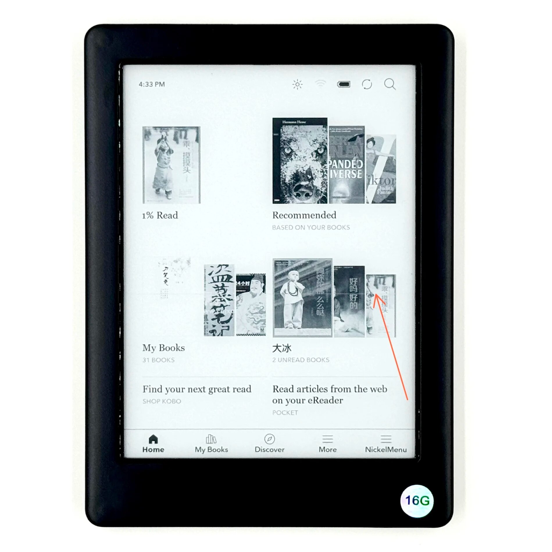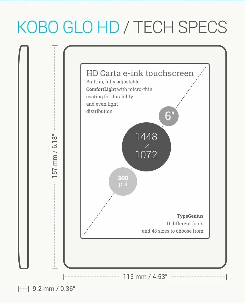 Электронная книга Kobo Glo HD, 1 линия на экране, 16 ГБ, 300PPI, электронная книга E-ink, 1448x1072, 6 дюймов, Kindle onyx boox
