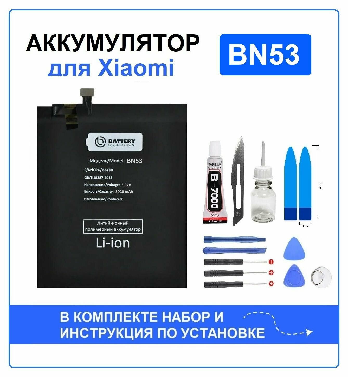 Аккумулятор для Xiaomi Redmi Note 10 Pro / Redmi Note 9 Pro (BN53) Battery Collection (Премиум) + набор для установки интересное: