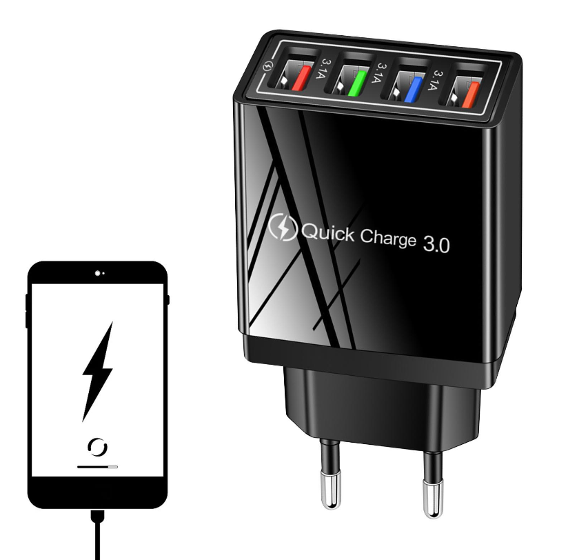 Зарядное устройство для телефона 4USB/ адаптер для смартфона/ блок питания 5V/3.1 А черный