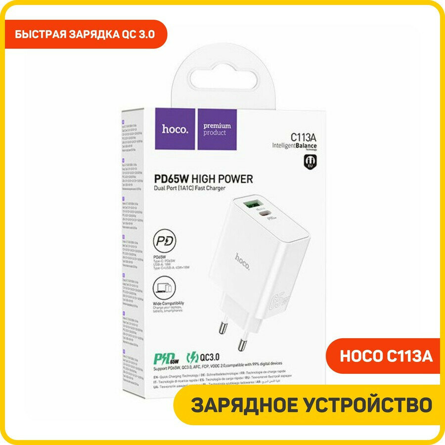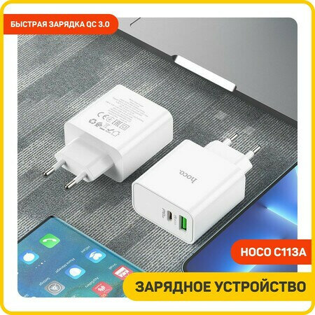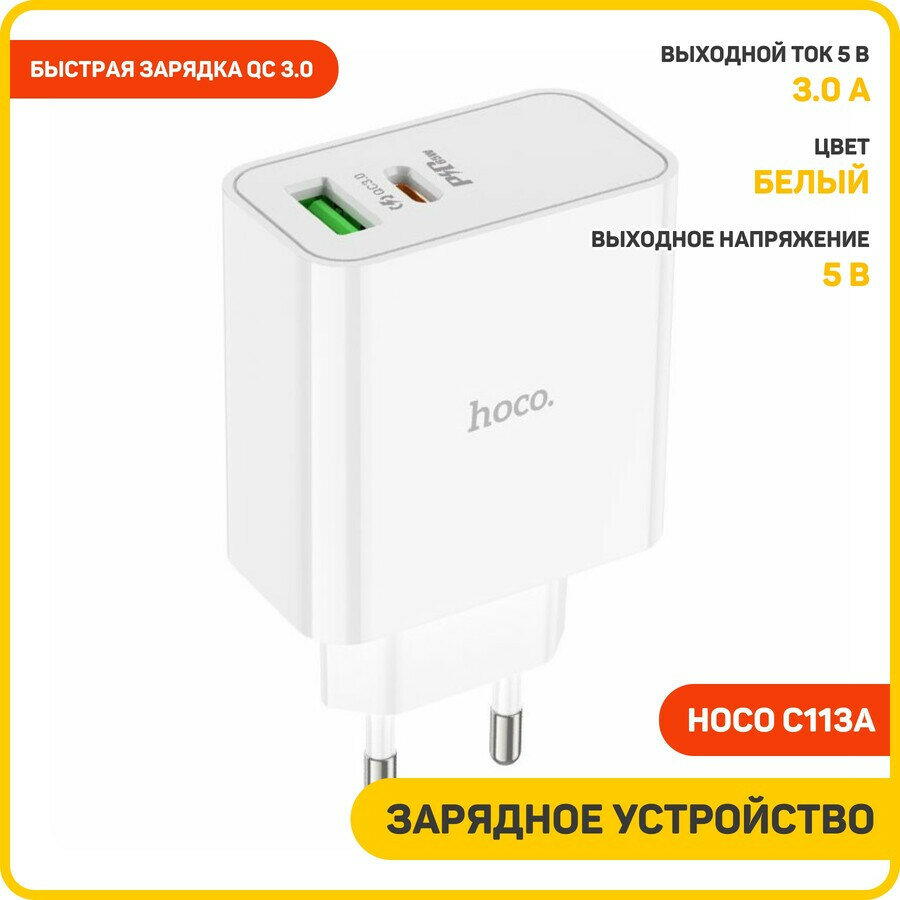 Сетевое зарядное устройство Hoco C113A USB + Type-C, белый интересное: