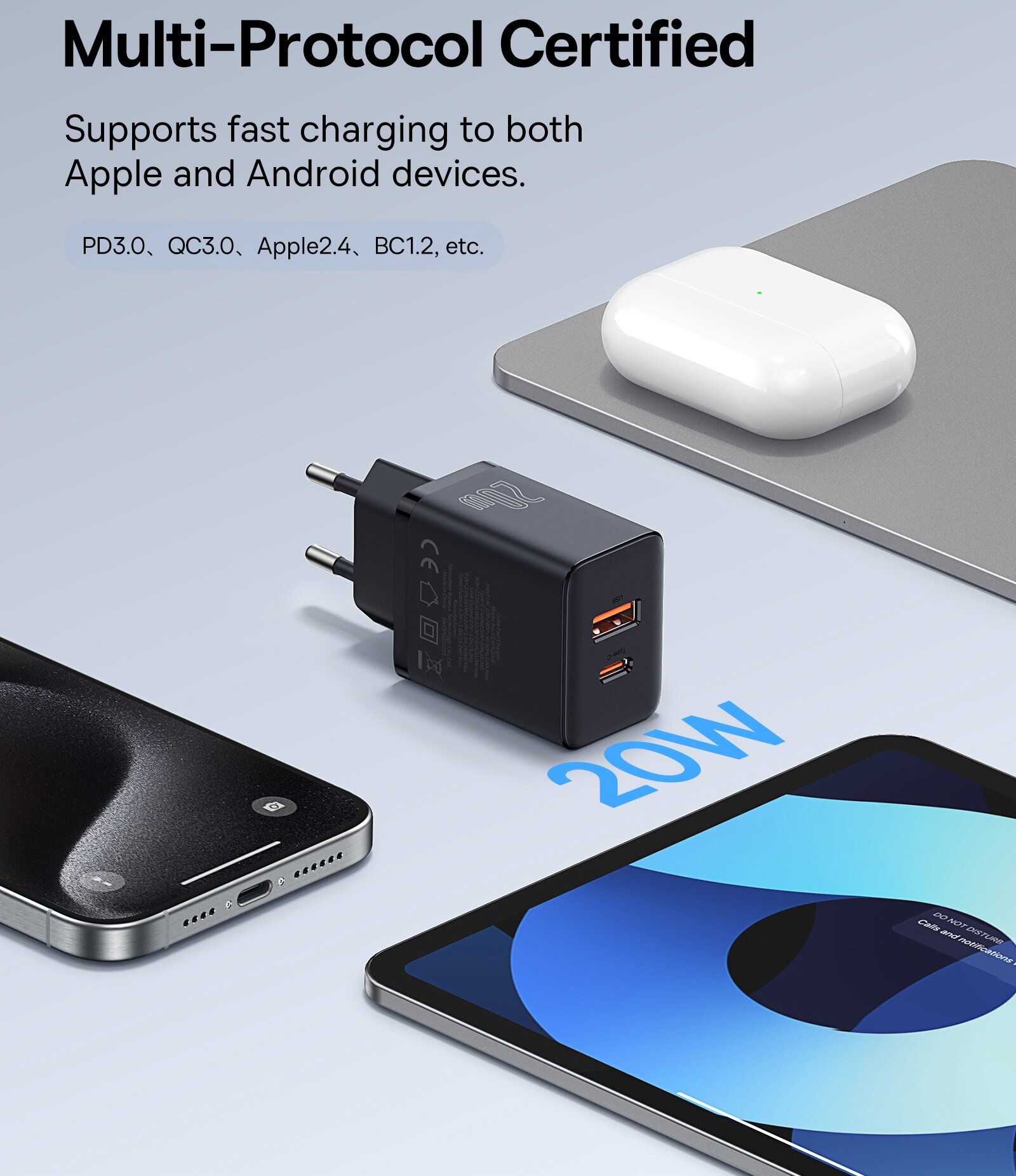 Сетевое зарядное устройство OS-Baseus Cube Fast Charger C+U 20W EU Cluster Black интересное: