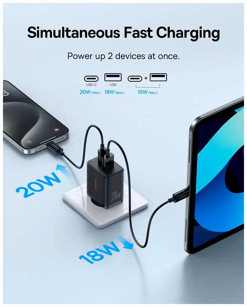 СЗУ Baseus Cube 20W USB-C/USB-A, черный