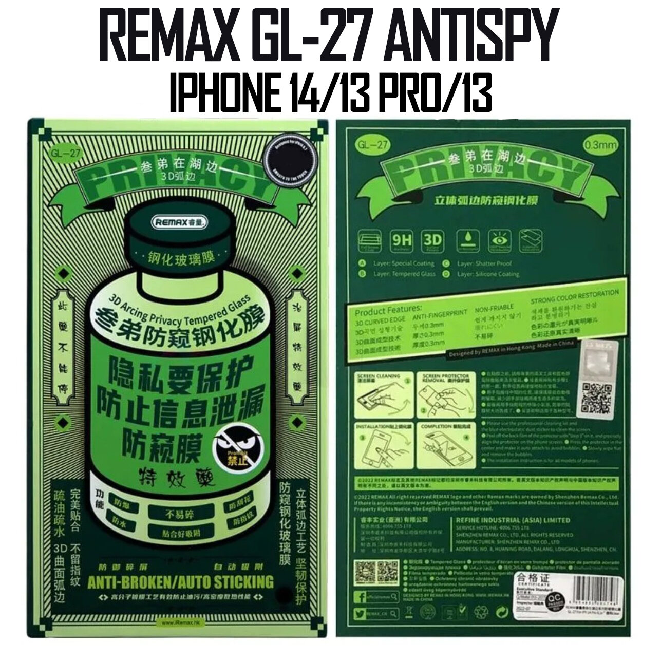 Защитное стекло для iPhone 14/13 Pro/13, Remax GL-27 3D AntiSpy/Антишпион, рамка 0,3 мм, черное