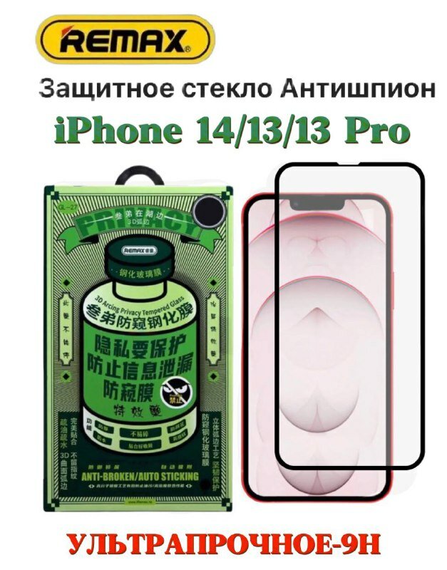 Защитное стекло для iPhone 14/13/13 Pro антишпион Remax / стекло на айфон антишпион ремакс