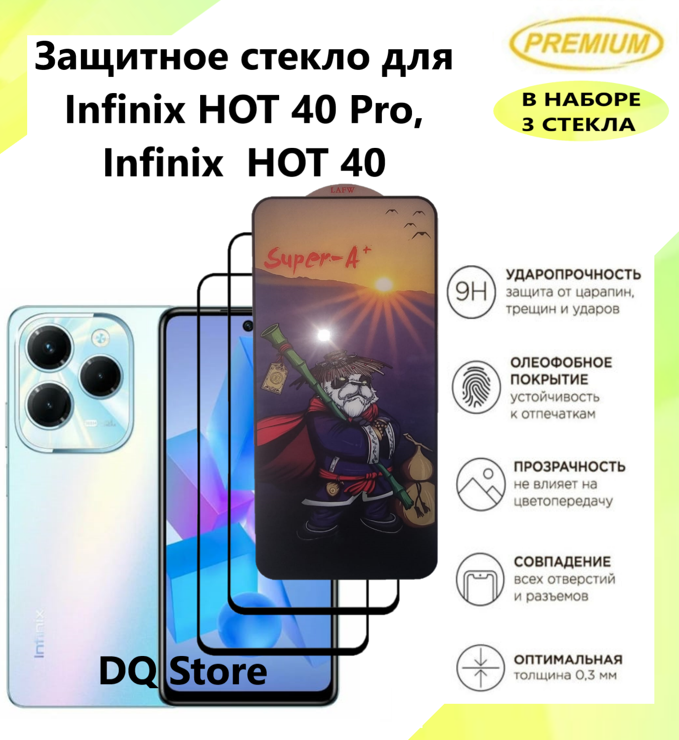 Купить 3 Защитных стекла для Infinix Hot 40 Pro / Infinix Hot 40 / Инфиникс Хот 40 Про / Инфиникс Хот 40 . Полноэкранные защитные стекла с олеофобным покрытием Premium