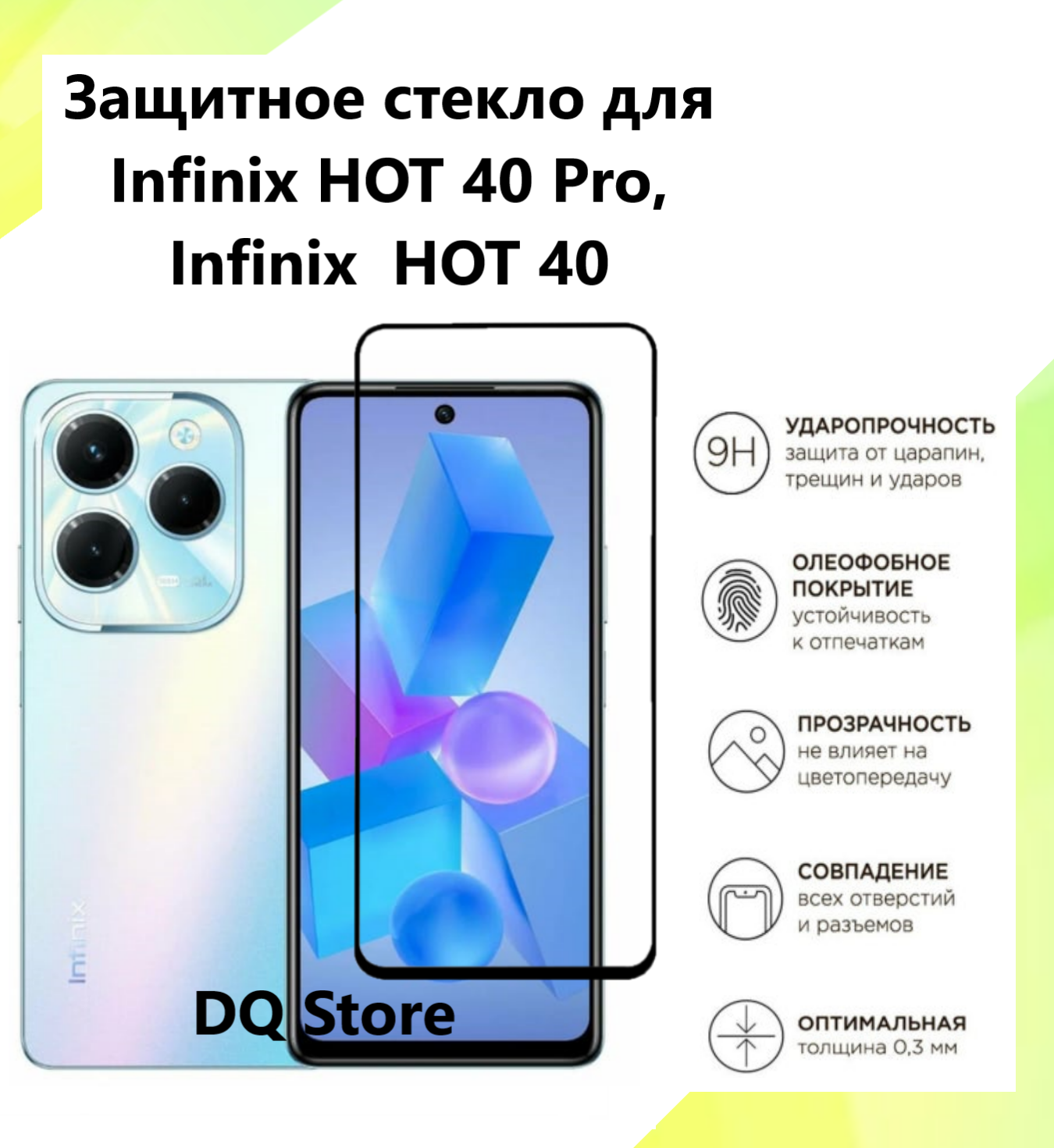 2 Защитных стекла для Infinix Hot 40 Pro / Infinix Hot 40 / Инфиникс Хот 40 Про / Инфиникс Хот 40 . Полноэкранные защитные стекла с олеофобным покрытием