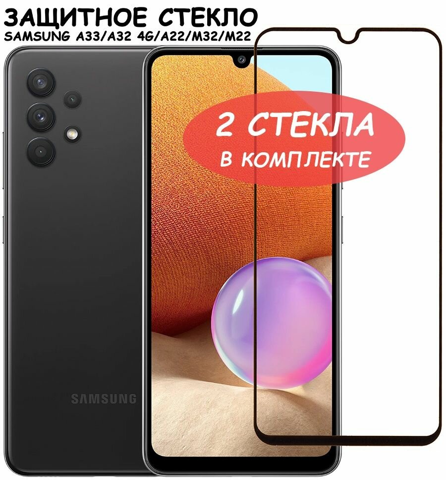 Купить Защитное стекло "Полное покрытие" для Samsung A336B A325F A225F M325F (A33 A32 4G A22 M32 M22)/самсунг а33 5 джи а32 4 джи а22 м32 м22 Черное - 2 стекла в комплекте