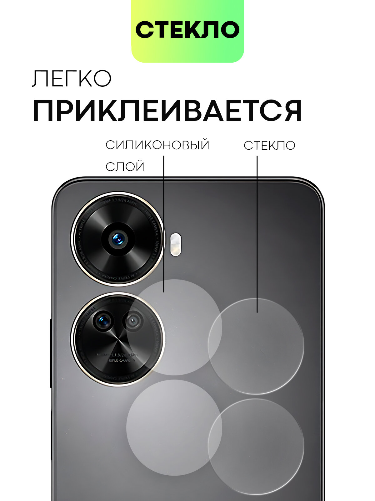 Защитное стекло на модуль камер для Huawei Nova 11 SE и 12 SE (Хуавей Нова 11 СЕ и 12 СЕ), BROSCORP, прозрачное интересное: