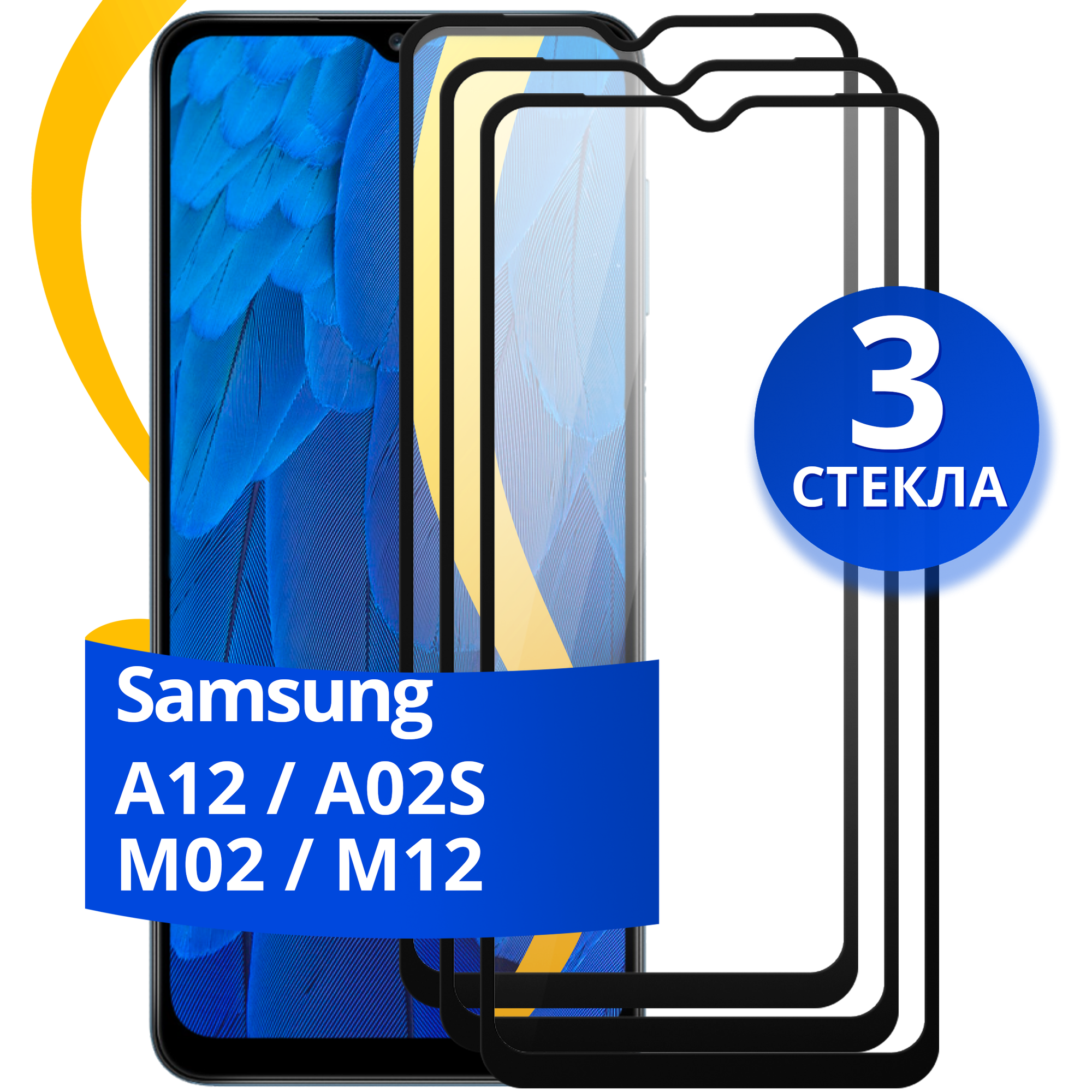 Купить Комплект из 3 шт. Защитное стекло для Samsung Galaxy A12, A02S, M02 и M12 / Стекло на Самсунг Галакси А12, А02С, М02 и М12