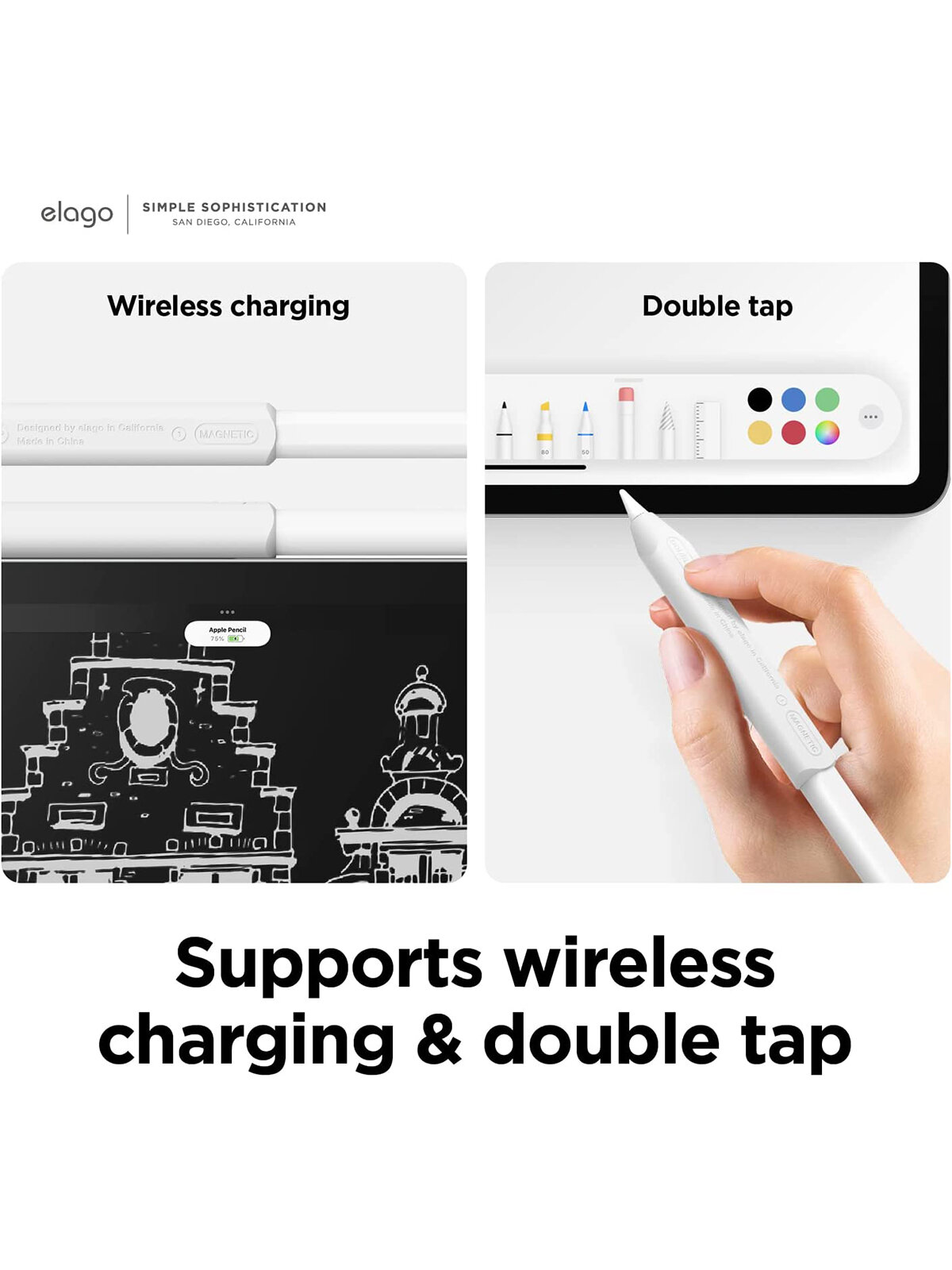 Купить Elago для Apple Pencil 2 чехол Grip silicone holder (2 шт.) White/Black