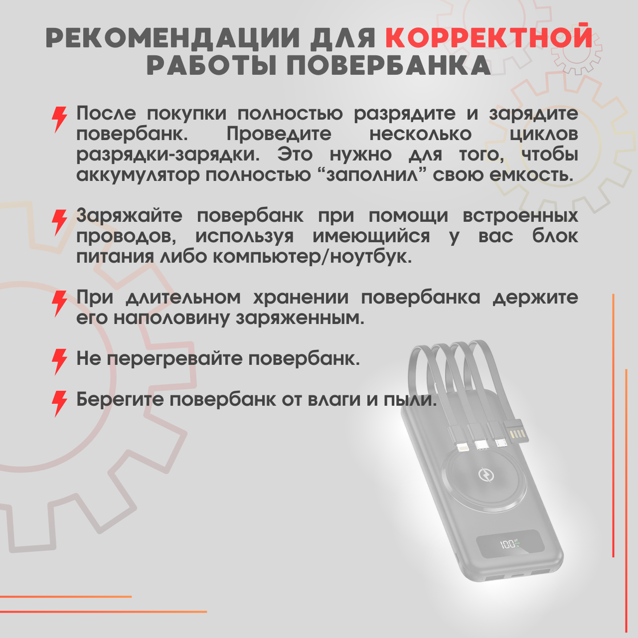 Повербанк, 30000 мАч / Power Bank, 30000 mAh / со встроенными кабелями Usb, Lightning, Type-C, Micro usb интересное: