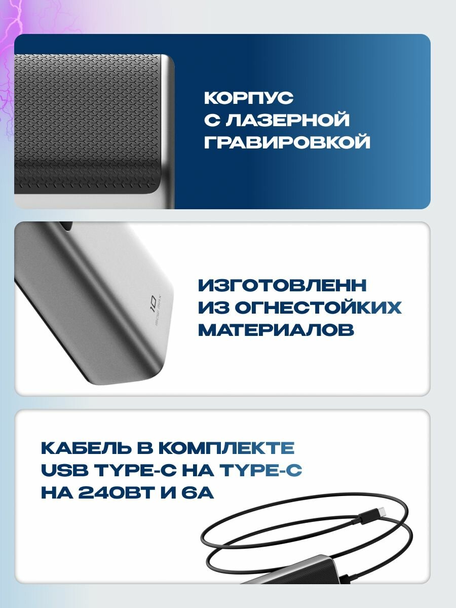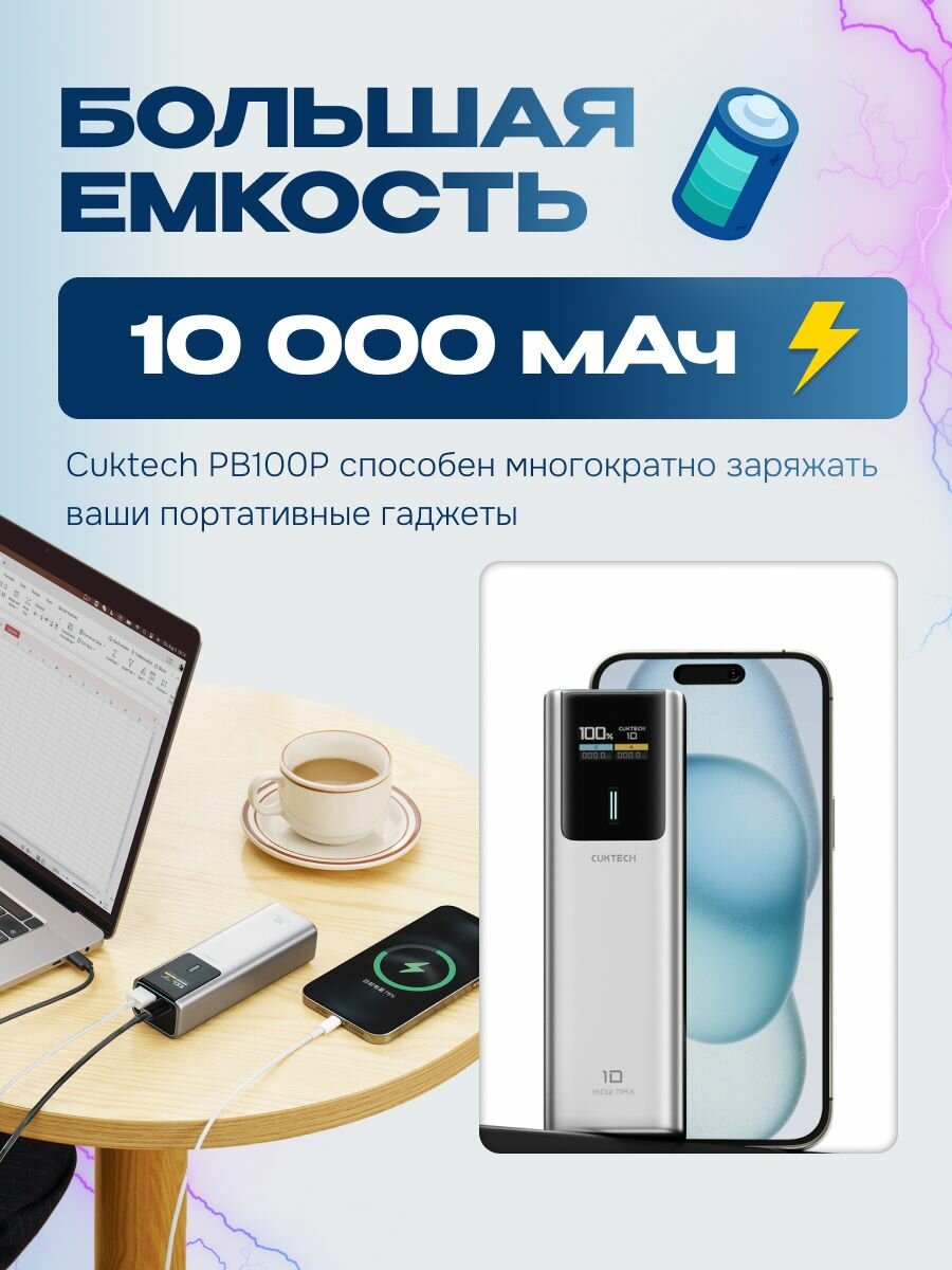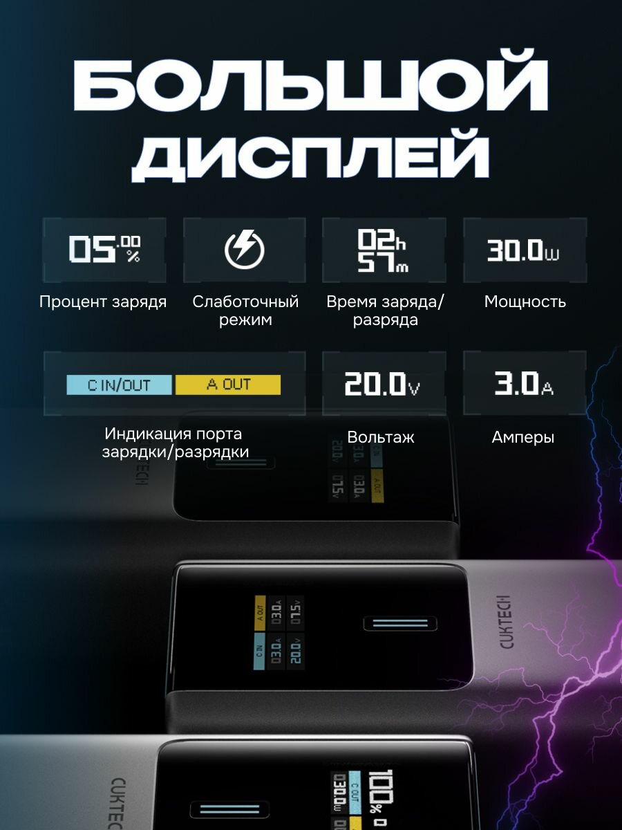 Внешний аккумулятор Cuktech PB100P, 10000 мАч, 150Вт, QC 3.0, PD3.1 TFT-экран, интересное: