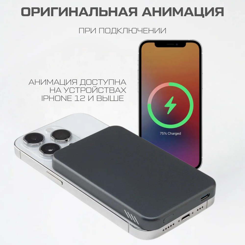 Ультратонкий магнитный повербанк для iPhone с быстрой беспроводной зарядкой 5000 mAh MagSafe Powerbank внешний аккумулятор интересное: