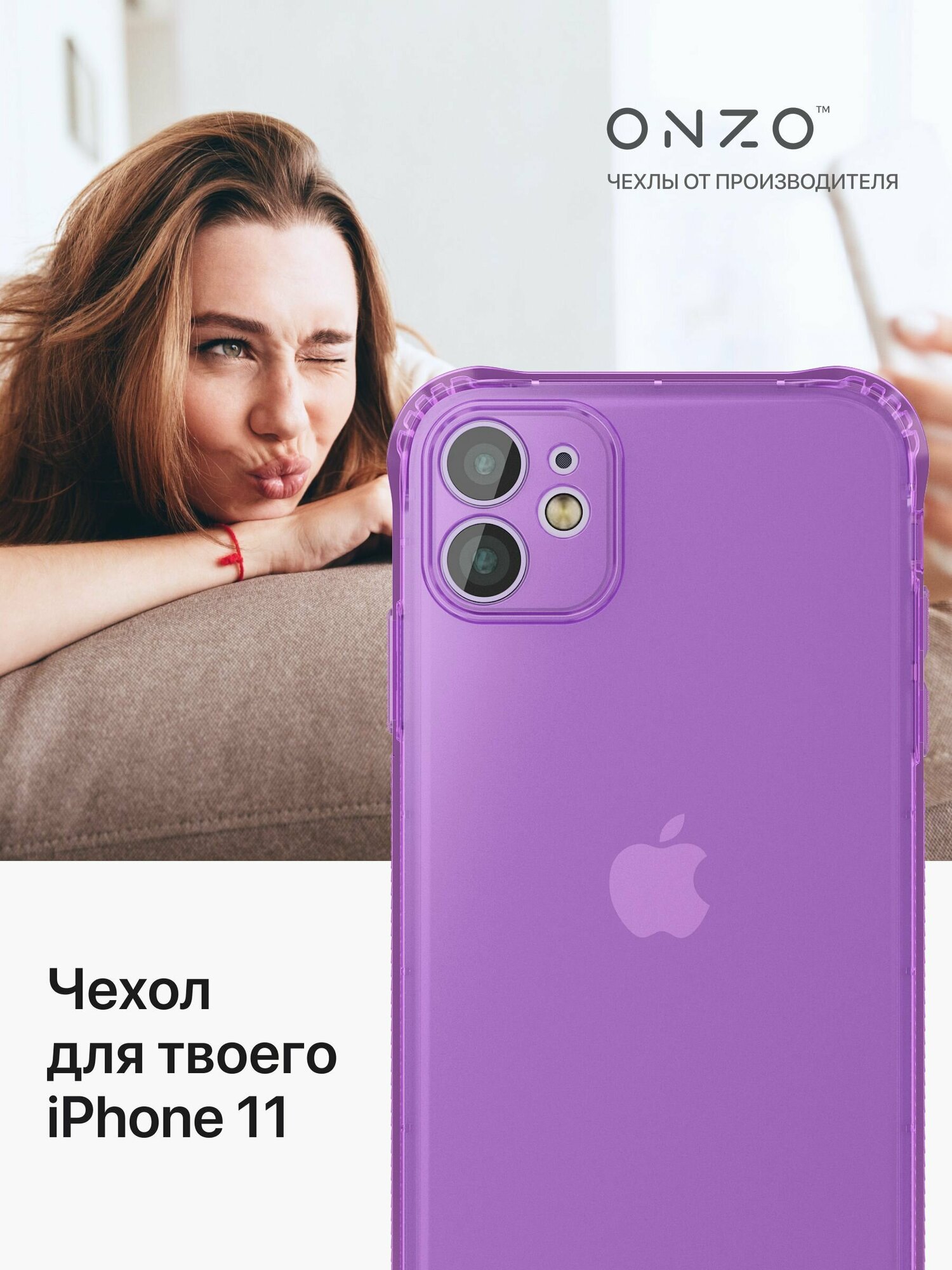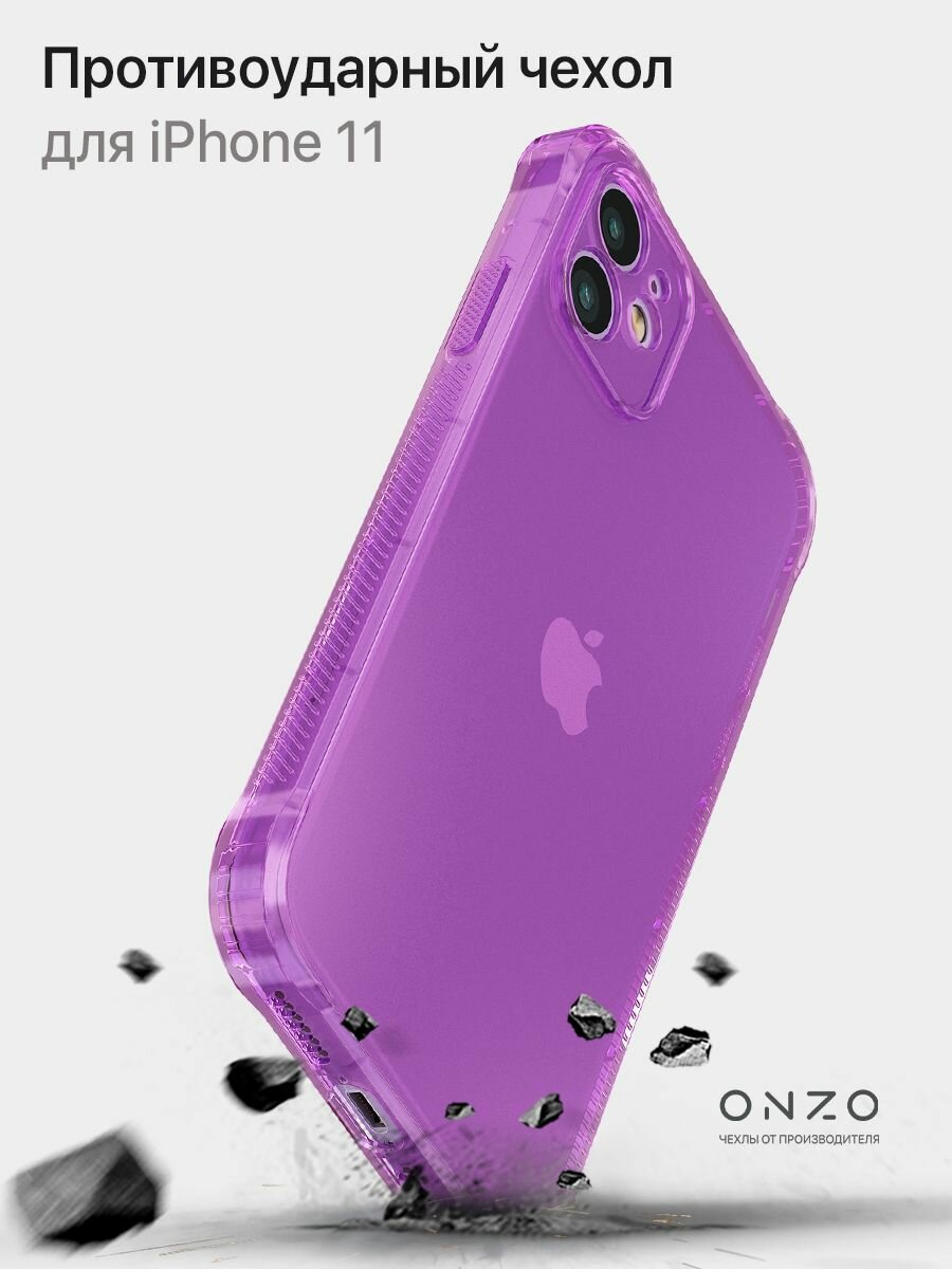 Купить Чехол на Айфон 11 противоударный прозрачный сиреневый iPhone 11 чехол