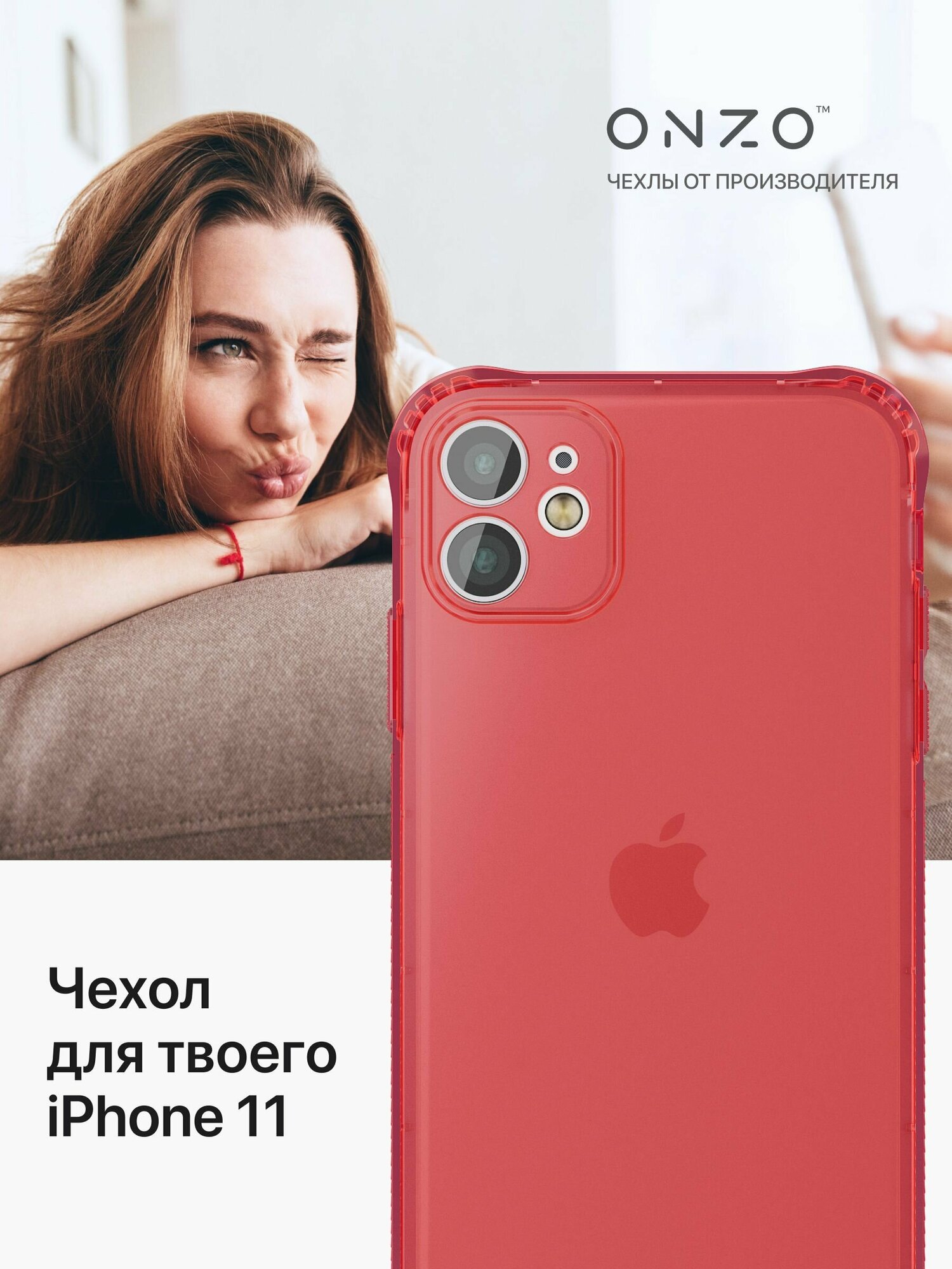 Купить Чехол на Айфон 11 противоударный прозрачный красный iPhone 11 чехол