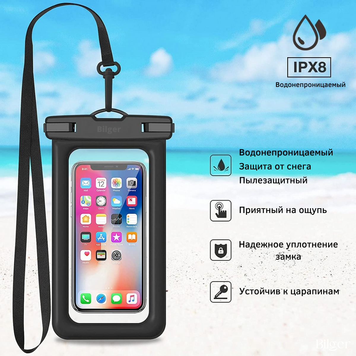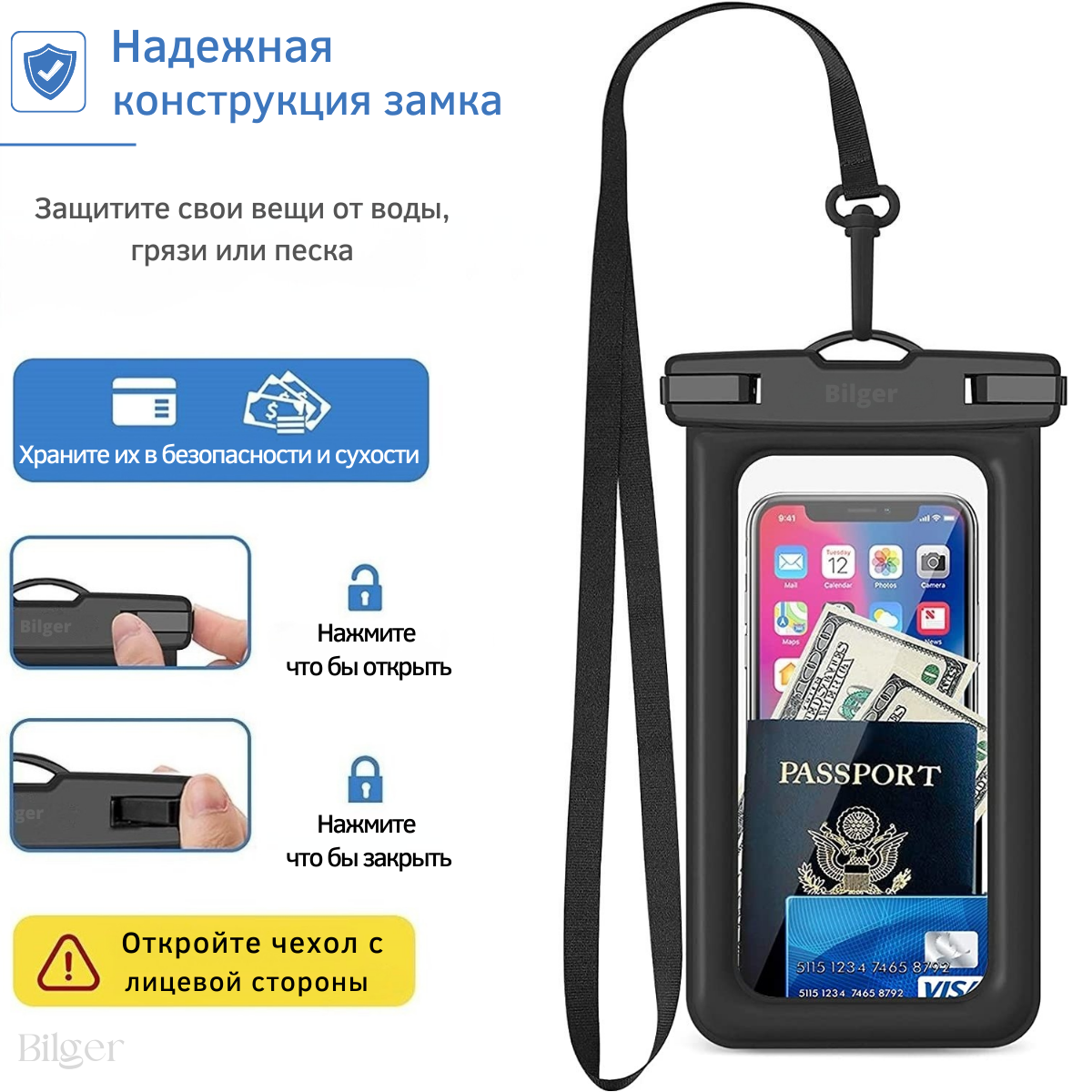Водонепроницаемый чехол сумка для телефона и документов Bilger, подводный непромокаемый аквабокс от воды Черный интересное: