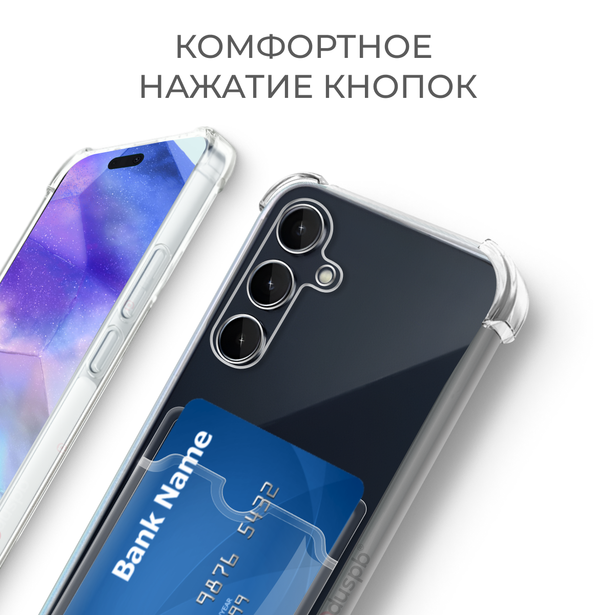 Прозрачный чехол для Samsung Galaxy A55 / защитный с карманом для карт и противоударными углами на Самсунг Галакси А55