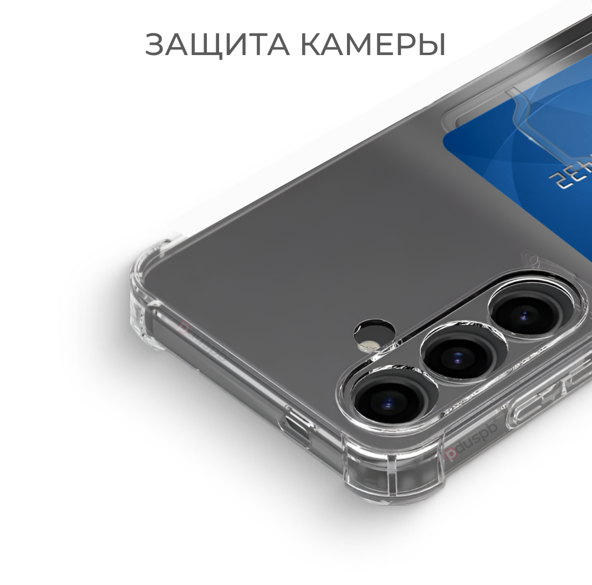 Купить Прозрачный чехол №05 для Samsung Galaxy A55 / защитный клип-кейс с карманом для карт и противоударными углами на Самсунг Галакси А55