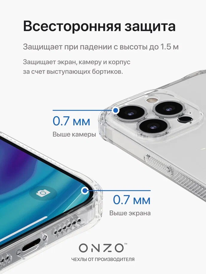Чехол ONZO "ANTISHOCK" для iPhone 13 Pro, синий прозрачный