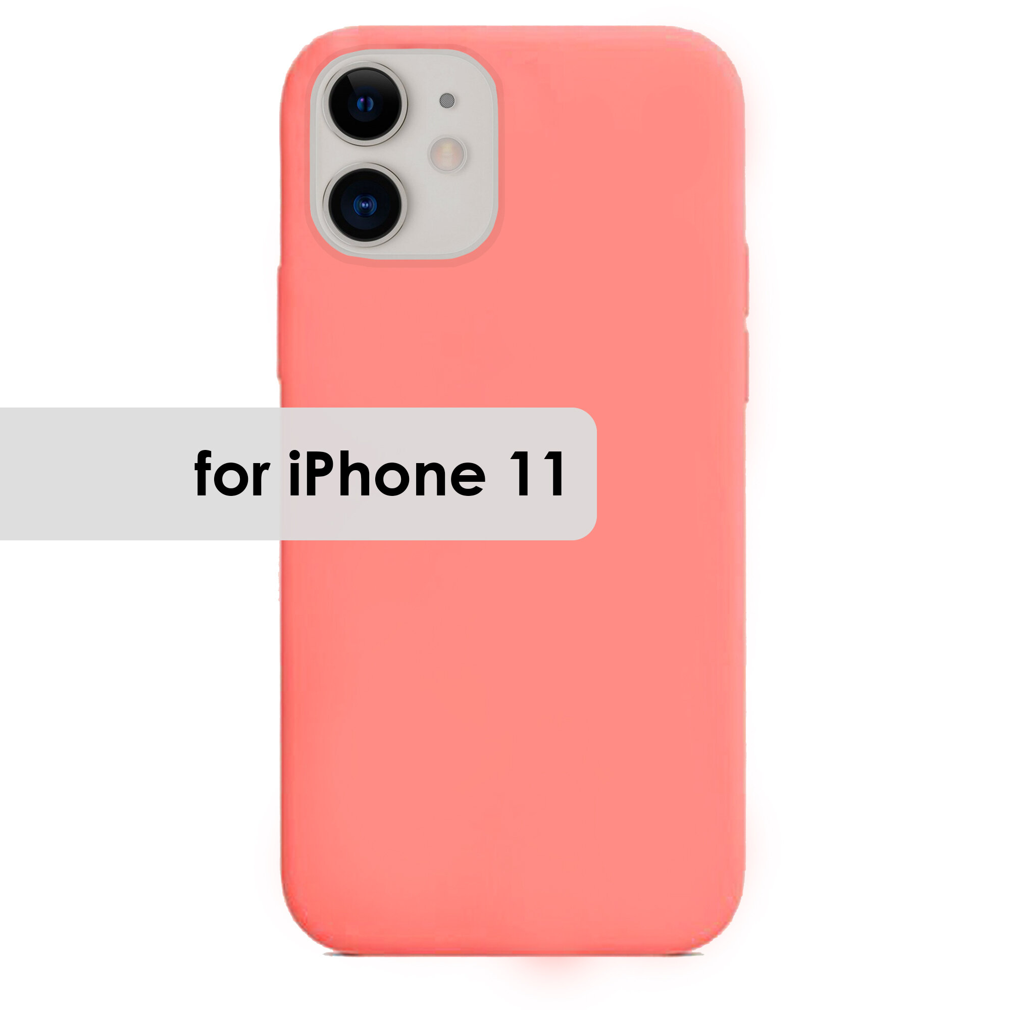 Чехол на айфон 11 с микрофиброй, закрытый низ, силиконовый, матовый, цвет коралловый