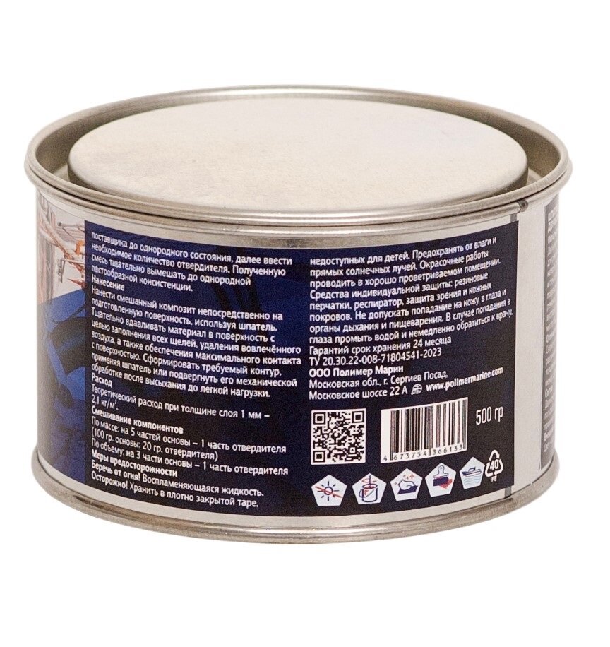 Купить Шпатлевка Polimer Marine, двухкомпонентная, эпоксидная сверхплотная, 0,5кг