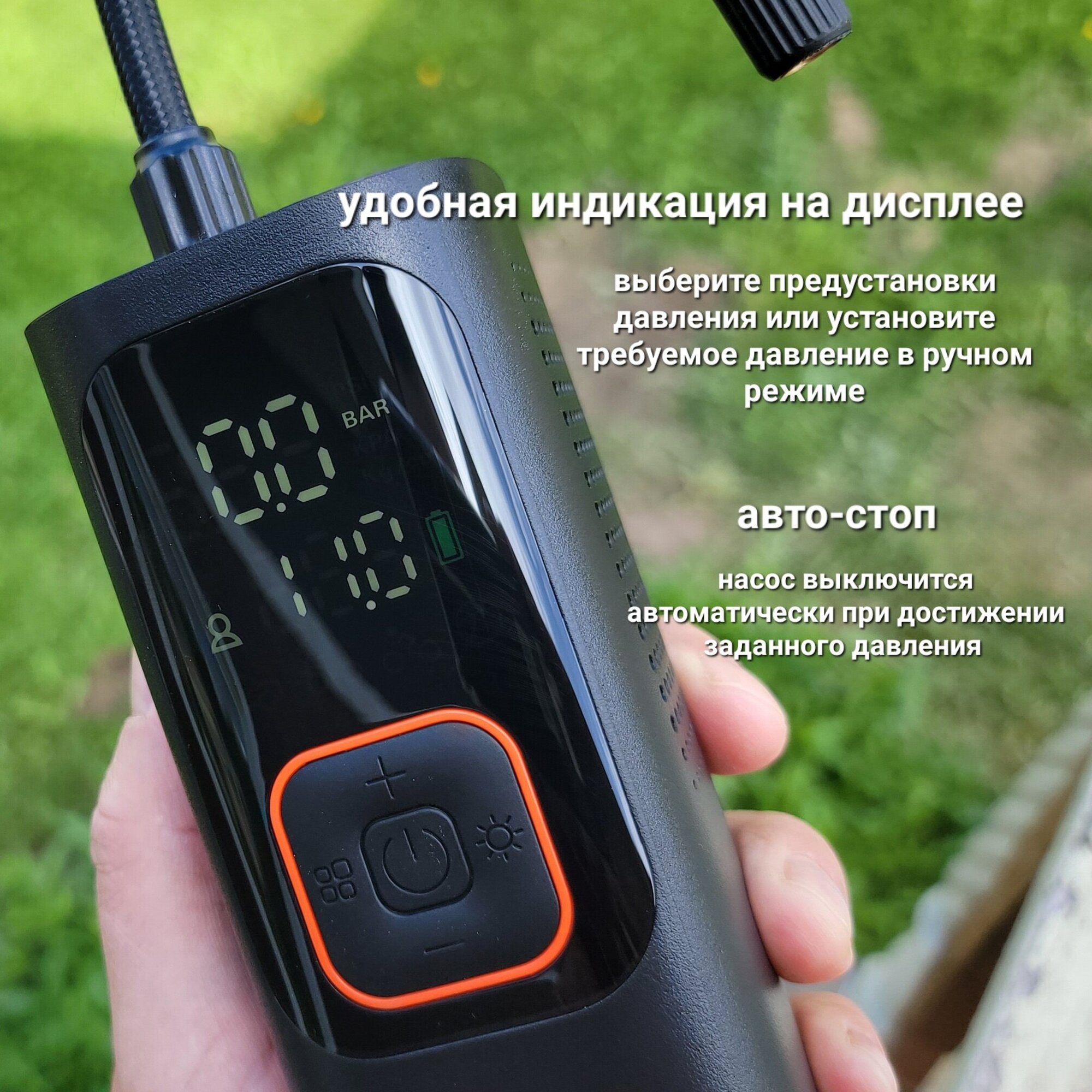 Автомобильный насос компрессор аккумуляторный беспроводной 2в1 питание 12В или Type-C 7500 мАч 11 Бар 30 л/мин для авто лодки SAP борда, матраса интересное: