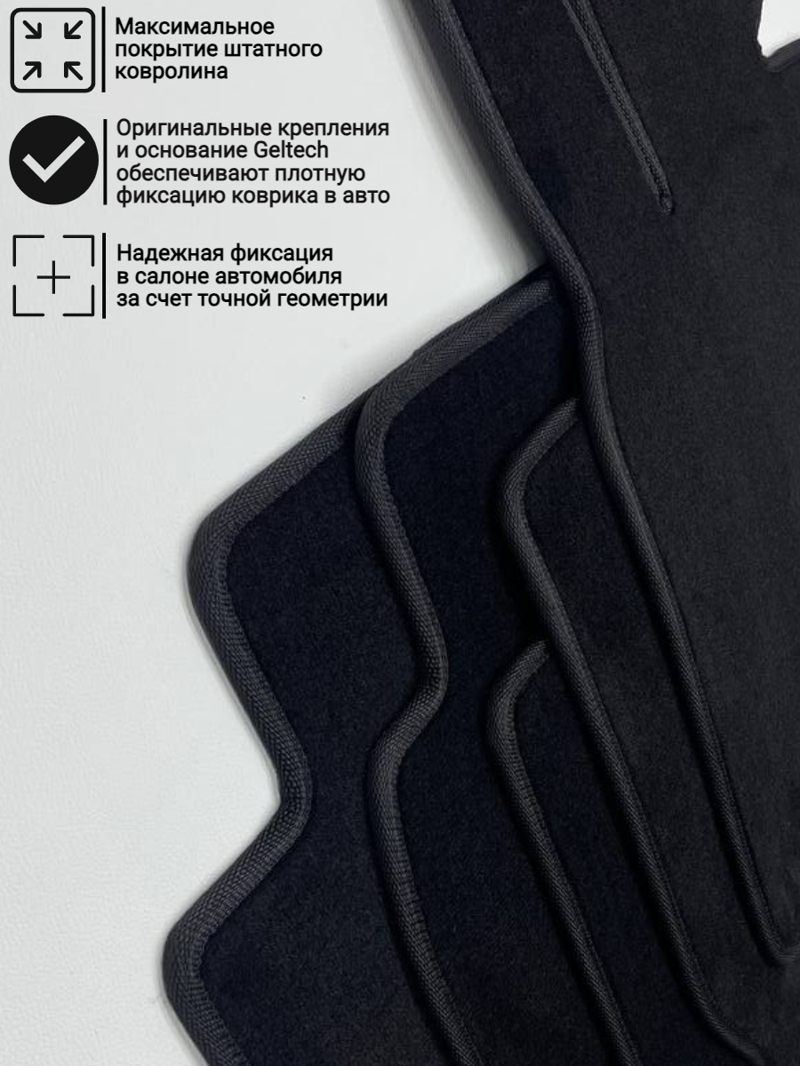 | Подробная комплектация | Водительский коврик - 1 шт Передний пассажирский коврик - 1 шт Задний правый пассажирский коврик - 1 шт Задний левый пассажирский коврик - 1 шт Перемычка на тоннель - 1 шт |